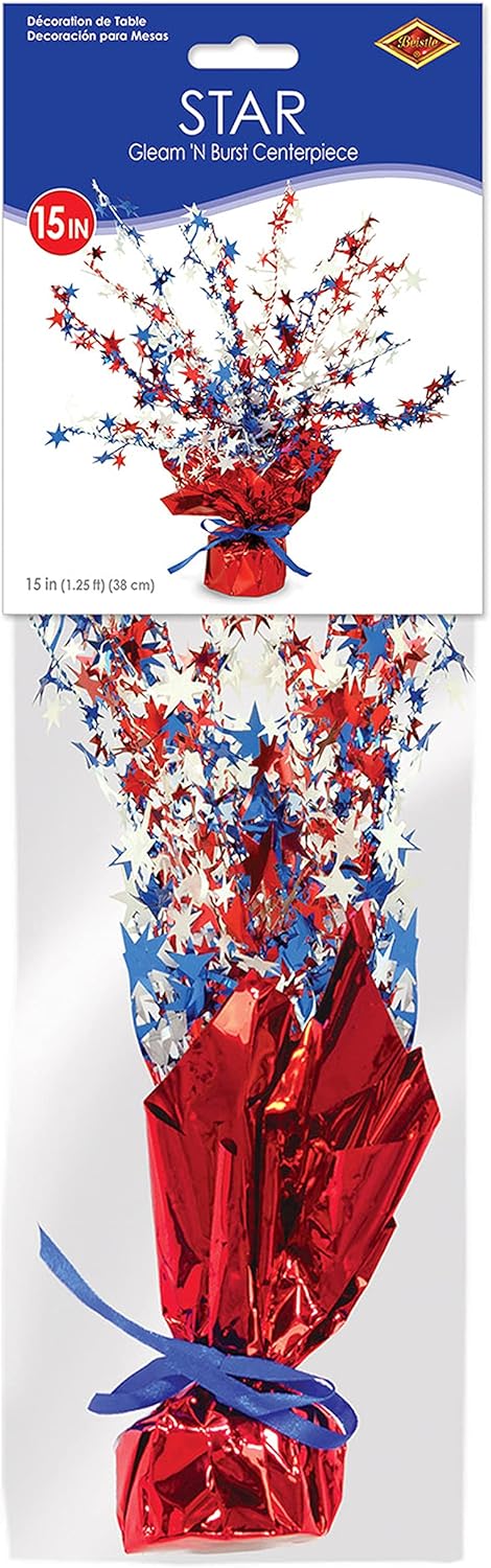- VIBRANT PATRIOTIC CENTERPIECE: Add color to your patriotic celebration with this fun Star Table Centerpiece. This metallic red, white, and blue decoration will add an exciting focal point to your American holiday display