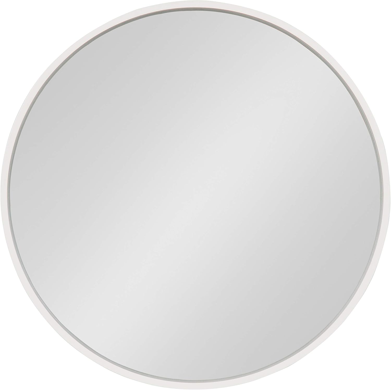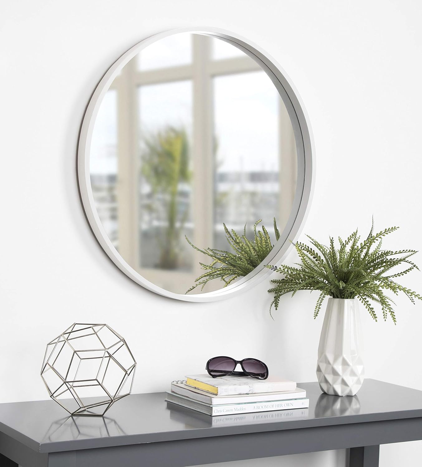 Kate and Laurel Travis Round Wood Wall Mirror, 25.6" Diameter, White, Modern Wall Décor Accent