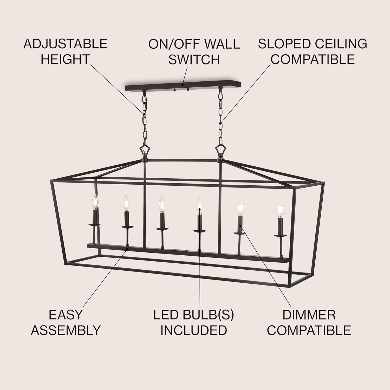 JONATHAN Y JYL7439A Pagoda Lantern Dimmable Adjustable Metal LED Pendant Classic Traditional Farmhouse Dining Room Living Room Kitchen Foyer Bedroom Hallway, 49 in, Oil Rubbed Bronze