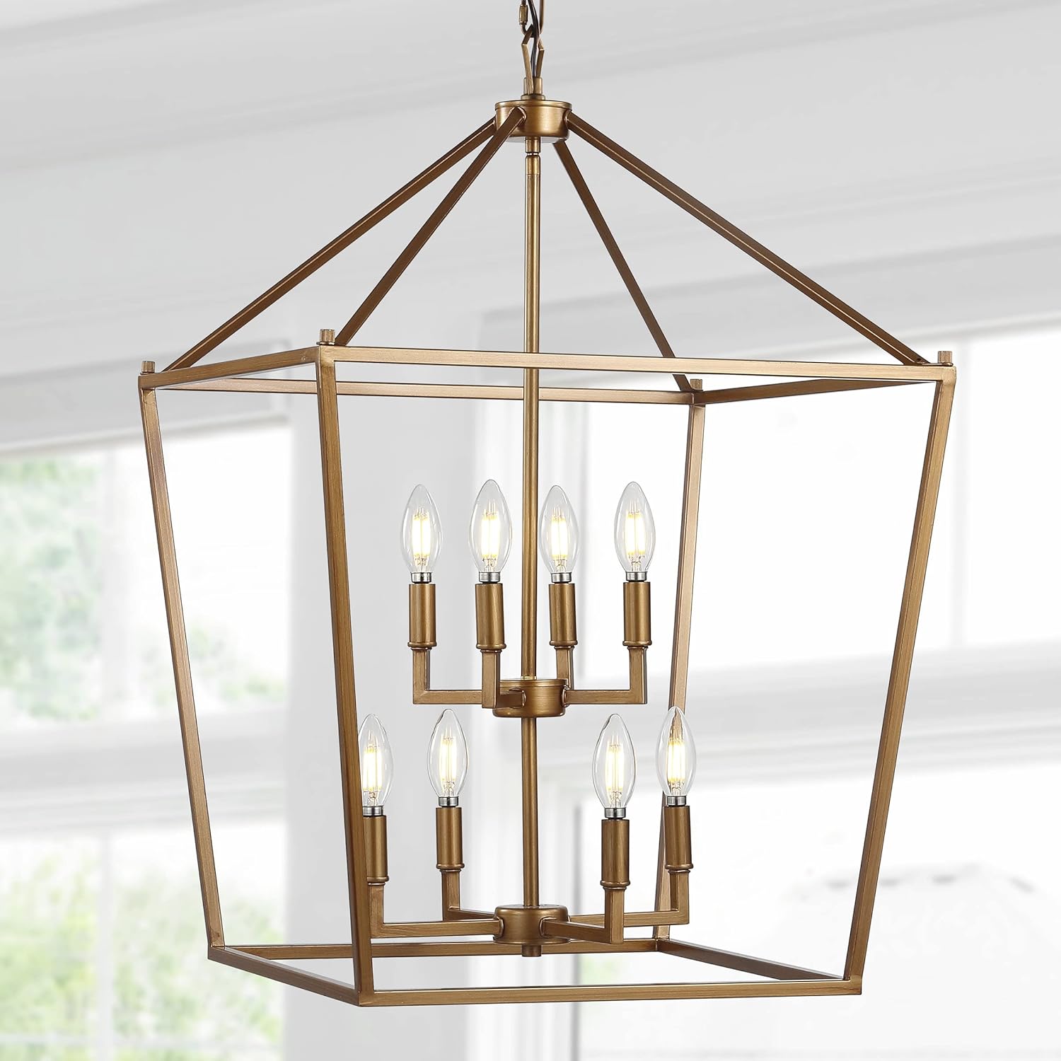 JONATHAN Y JYL7438B Pagoda Lantern Dimmable Adjustable Metal LED Pendant Classic Traditional Farmhouse Dining Room Living Room Kitchen Foyer Bedroom Hallway, 20 in, Antique Gold