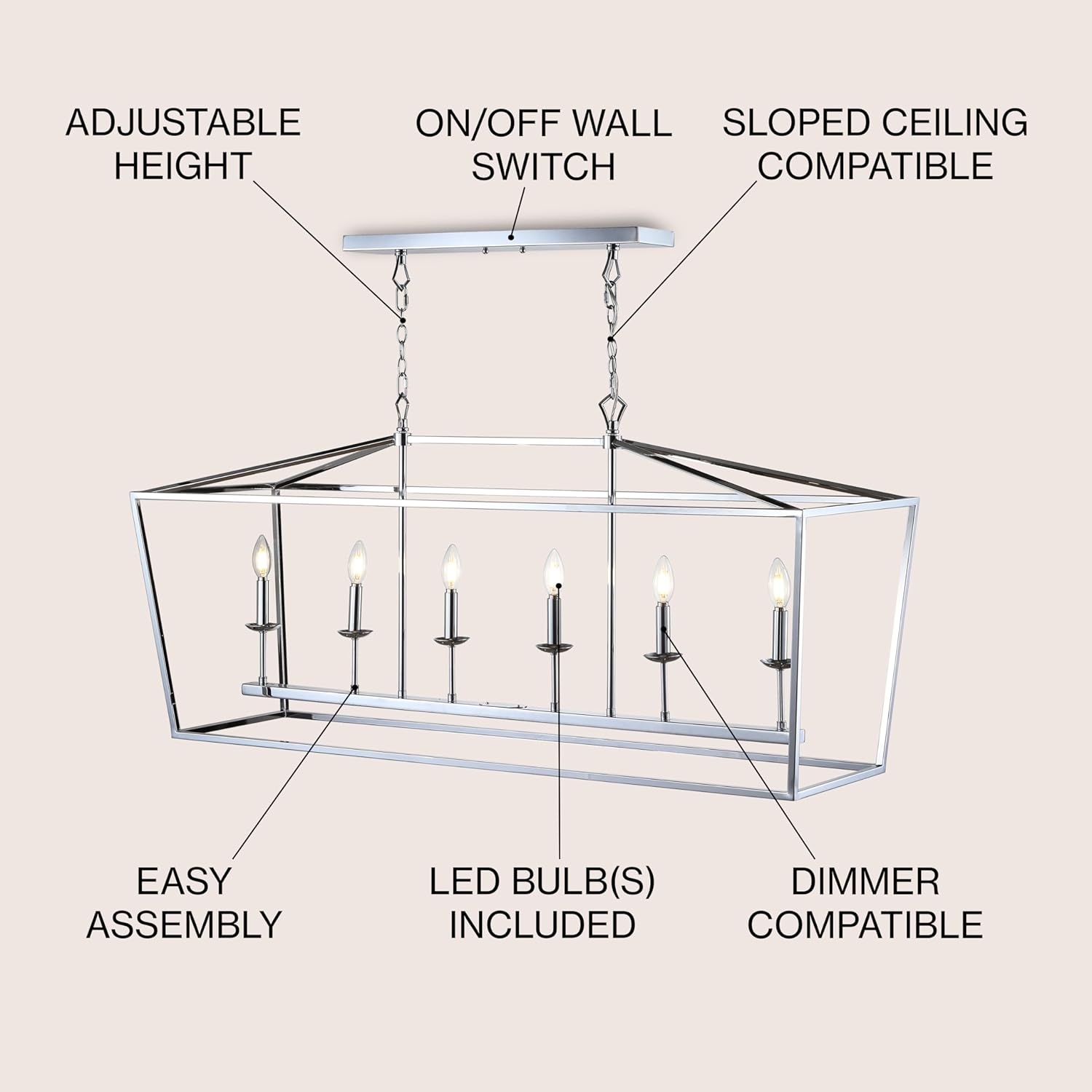 JONATHAN Y JYL7439C Pagoda Lantern Dimmable Adjustable Metal LED Pendant Classic Traditional Farmhouse Dining Room Living Room Kitchen Foyer Bedroom Hallway, 49 in, Chrome