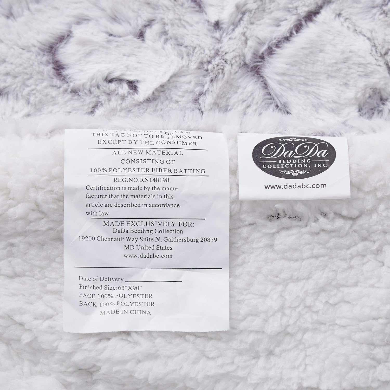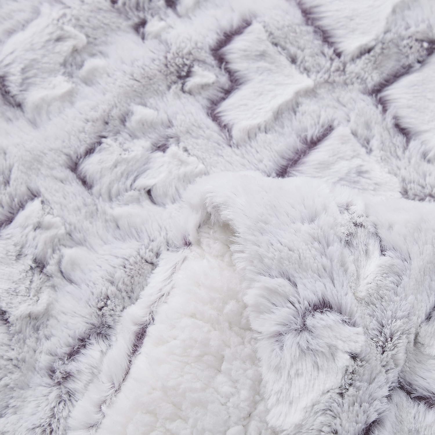 DaDa Bedding Luxury Faux Fur Throw Blanket - Dreamy Milky Way White with Subtle Purple Undertones - Embossed Sherpa Backside - Cozy & Elegant Cloud Design - Soft Plush Fluffy Warm Blanket - 63" x 90"