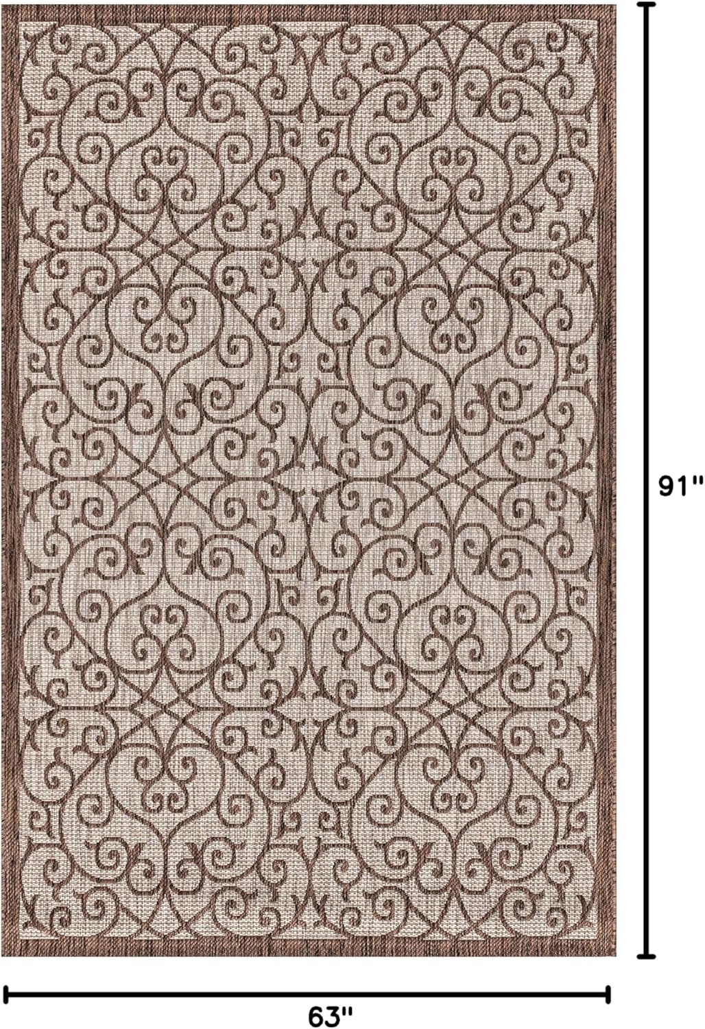 JONATHAN Y Vintage Filigree Indoor Outdoor Area Rug 5X8 Taupe/Espresso, Madrid Textured Weave for Backyard, Patio, Porch, Easy-Cleaning, High Traffic, Pet-Friendly, Non-Shedding (SMB107C-5)