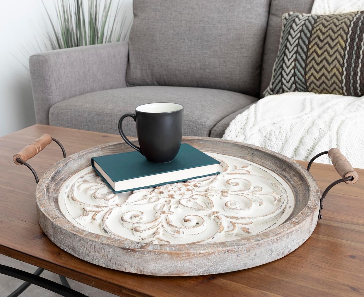 - ORNATE DESIGN: The top surface of this decorative serving tray features a vintage medallion-inspired carved surface for a conversation-starting design detail