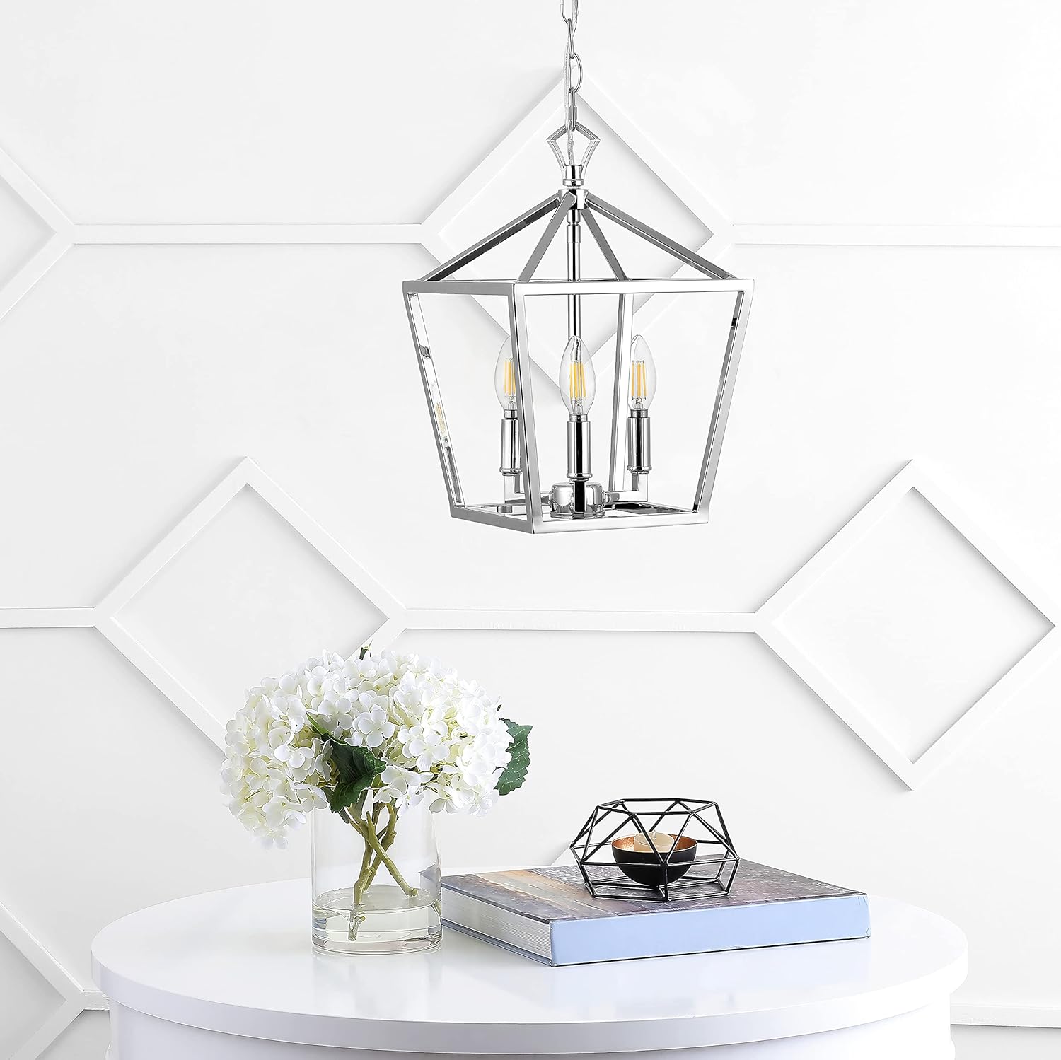 JONATHAN Y JYL7601C Pagoda Lantern Dimmable Adjustable Metal LED Pendant Classic Traditional Farmhouse Dining Room Living Room Kitchen Foyer Bedroom Hallway, 10 in, Chrome