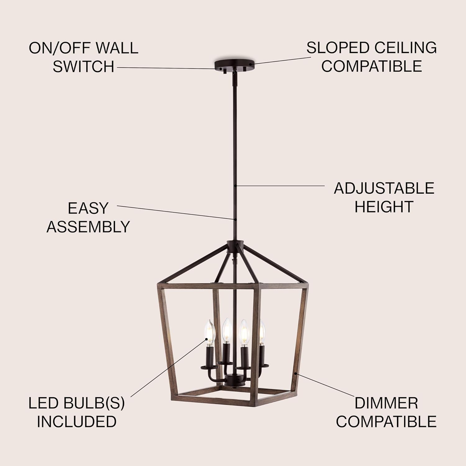 JONATHAN Y JYL1322A Pagoda 13" 4-Light Iron Farmhouse Industrial Lantern LED Pendant, Rustic, Bohemian, Coastal, for Dining Room, Kitchen, Living Room, Oil Rubbed Bronze/Faux Wood