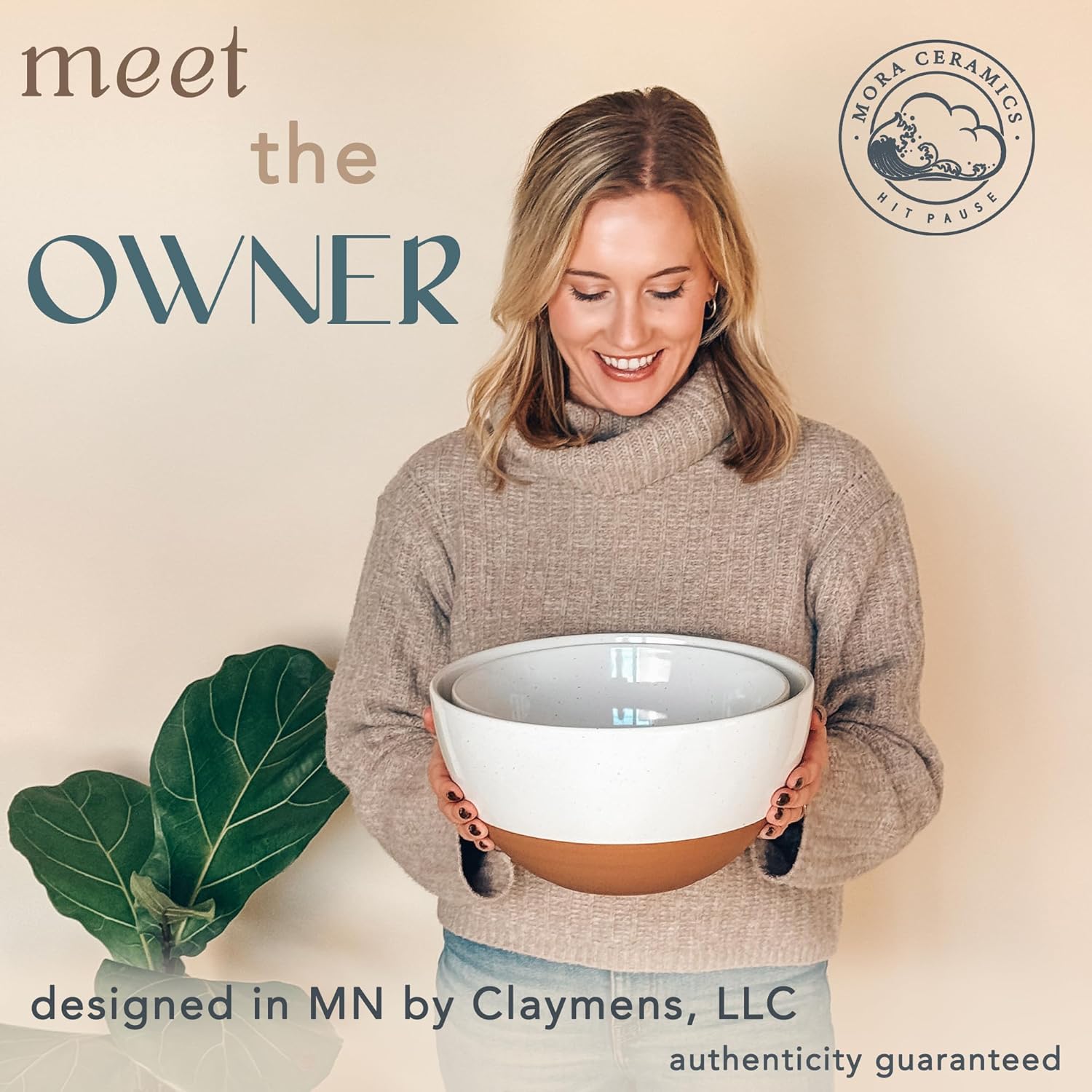 Mora Ceramic Large Mixing Bowls - Set of 2 Nesting Bowls for Cooking, Serving, Popcorn, Salad etc - Microwavable Kitchen Stoneware, Oven, Microwave and Dishwasher Safe - Extra Big 2.5 & 1.6 Qt - White