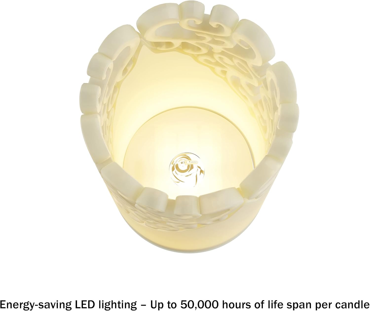 - LED PILLAR CANDLES – The set of 6 vanilla-scented real wax electric candles features intricate laser-cut lace detailing that will add a unique accent to any room. The varied heights create visual interest, perfect for centerpieces or mantel displays.