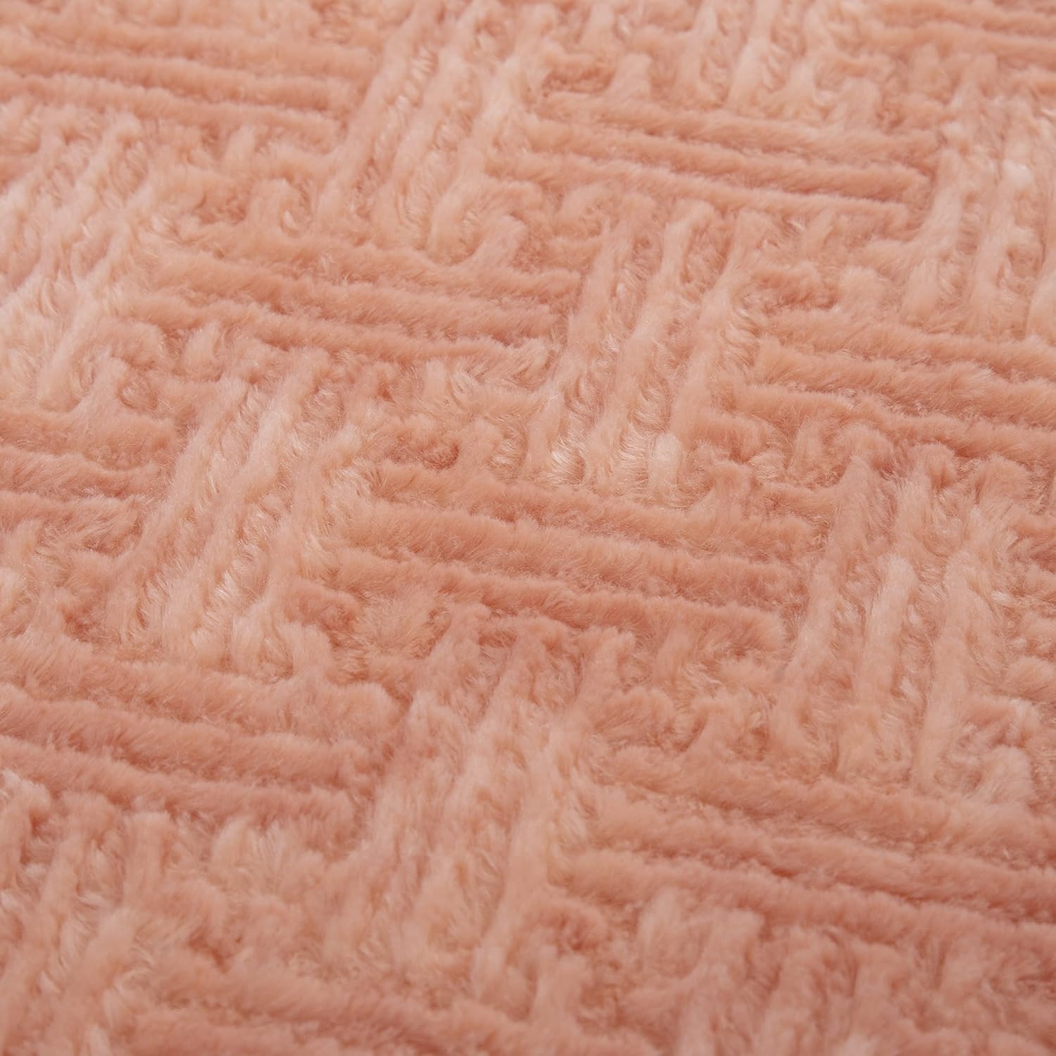 DaDa Bedding Coral Pastel Peach Rose Faux Fur Throw Blanket - Dreamy Geometric Embossed Sherpa Backside - Super Soft Warm Cozy Plush Fluffy - 50" x 60"
