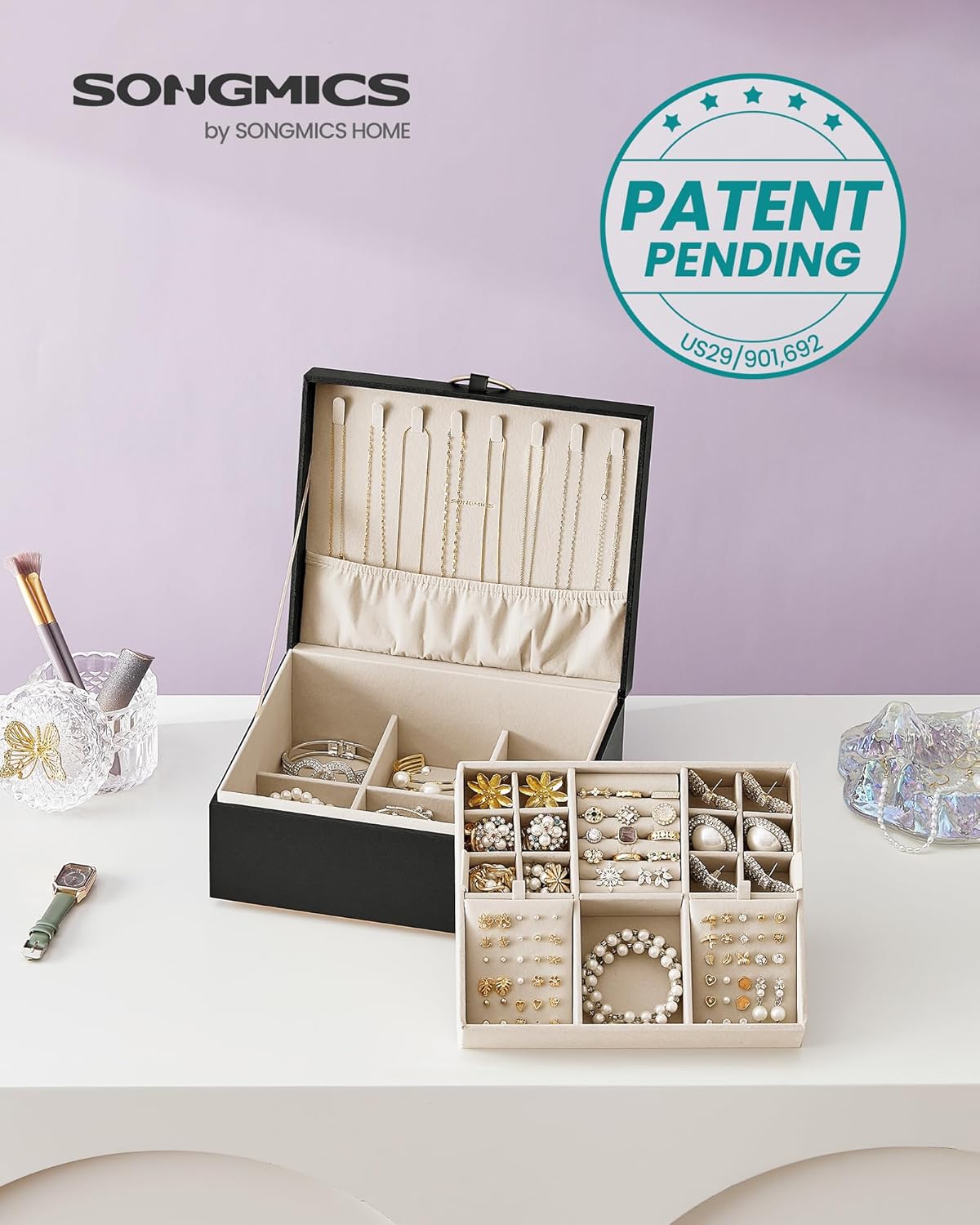 SONGMICS 2-Layer Jewelry Box, Jewelry Organizer with Handle, Removable Jewelry Tray, Jewelry Storage, Floating Effect, 8.1 x 9.4 x 4.3 Inches, Gift Idea, Black UJBC165B01
