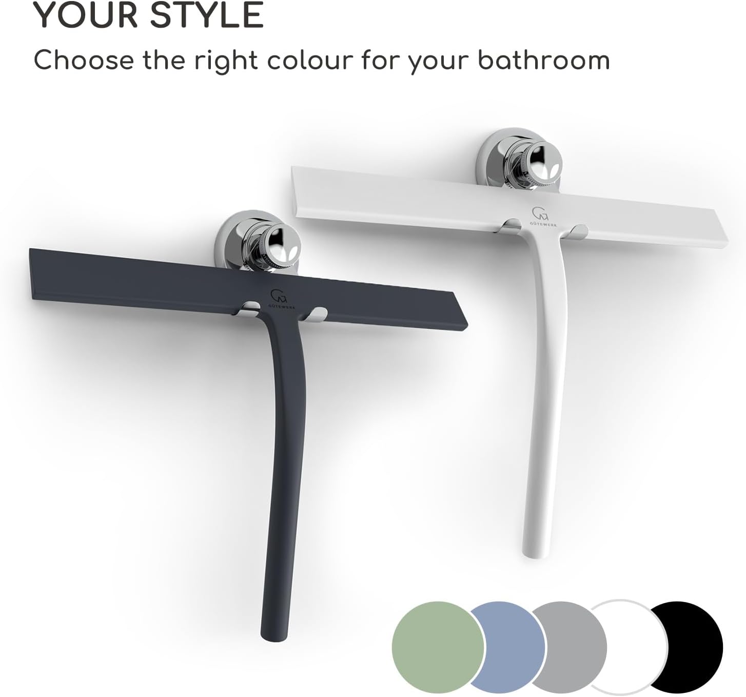 - MINIMALIST TIMELESS DESIGN - The GÜTEWERK glass squeegee is crafted with a matte white finish that impresses with its elegant timeless and smart design. In addition, the chrome-colored stainless-steel hook integrates well with any modern bathroom.