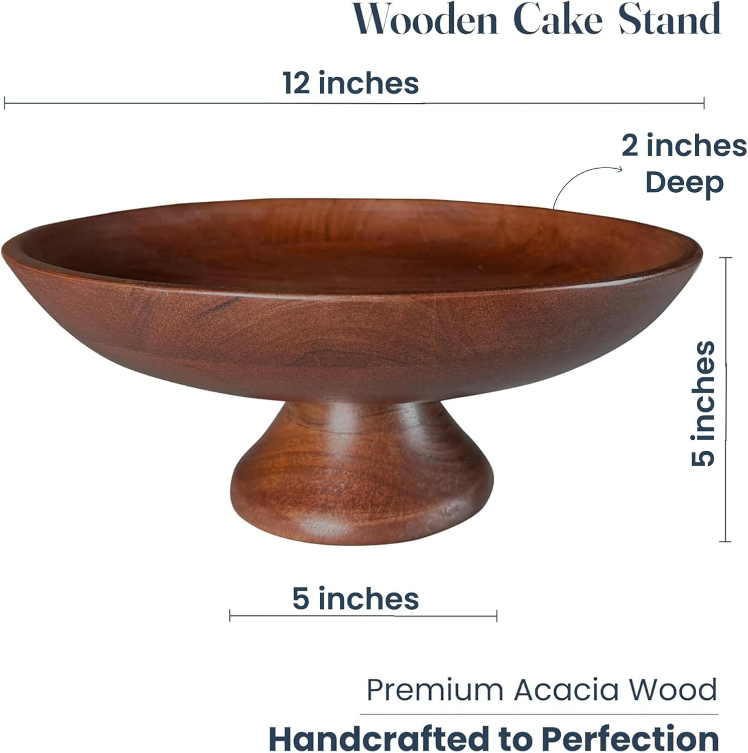 The Fine Living Co. Wooden Fruit Bowl, Large Serving Platter for Dessert, Round Shaped Serving Bowl for Cake, Snacks, Acacia Wood Bowls for Centrepiece, Wedding, Walnut, 12"x2"