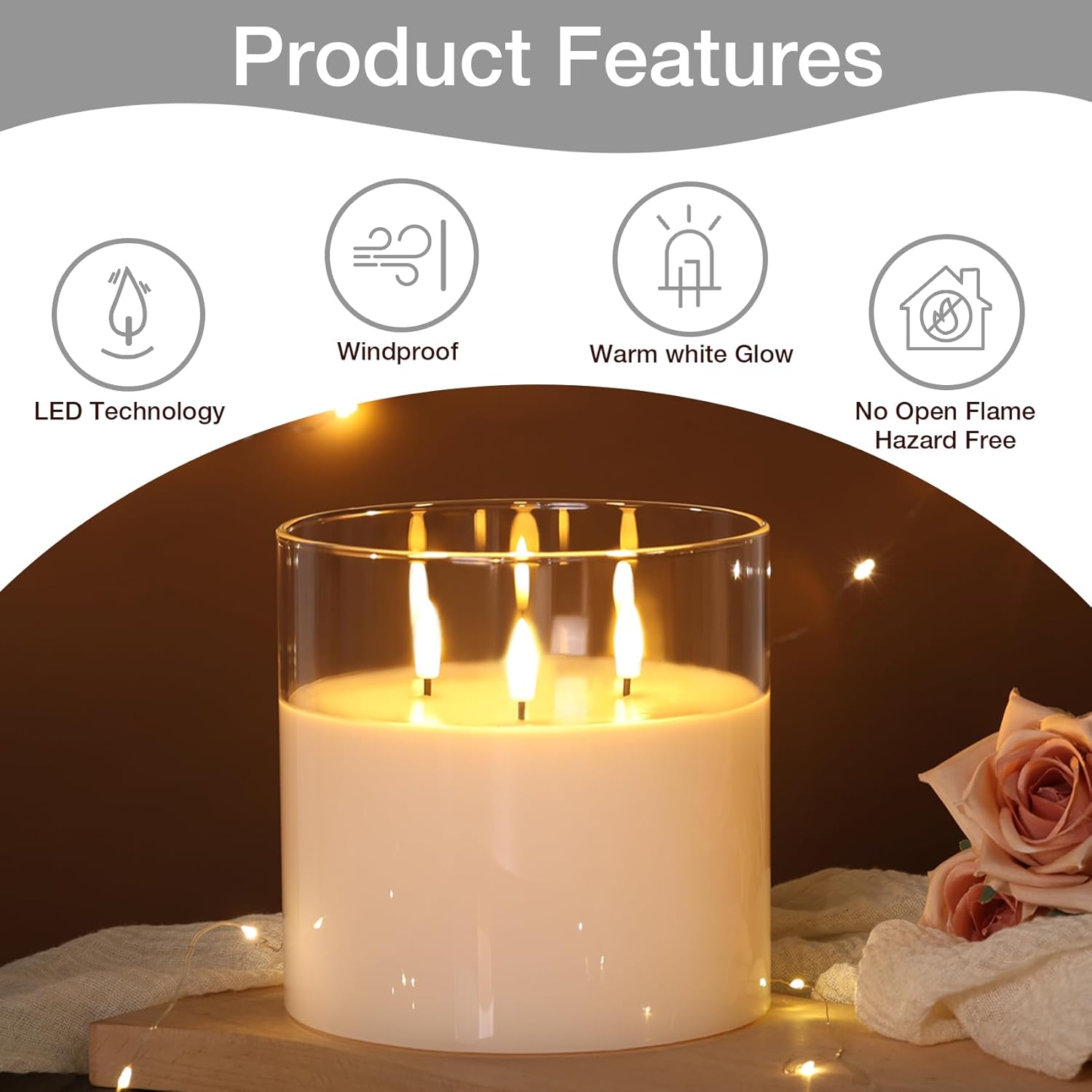 - Great Decor & Gift Set - this beautiful 3 wick clear glass led candle is great for table centerpieces, bedroom, living room decor, seasonal holiday festival, also ideal as gift for Mother's Day, birthday, housewarming, Christmas and so on.