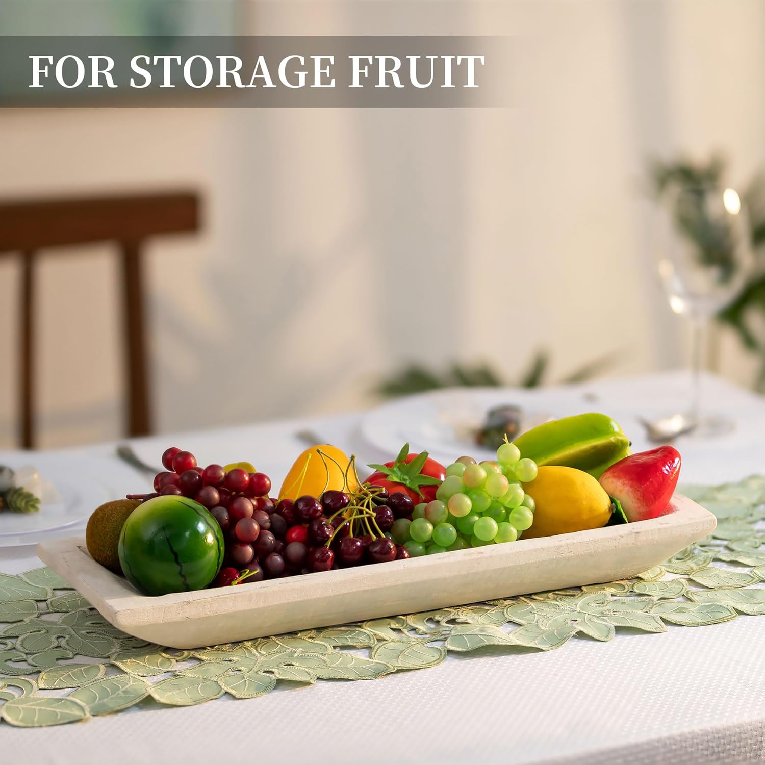 - Size: 20x7x2.4",Handmade with care, our decorative wooden bowls may have minor size variations of +/- 0.5 inch. These shallow bowls are crafted exclusively for decoration, not for food use, but they serve as charming table centerpieces, perfect for candleholders.