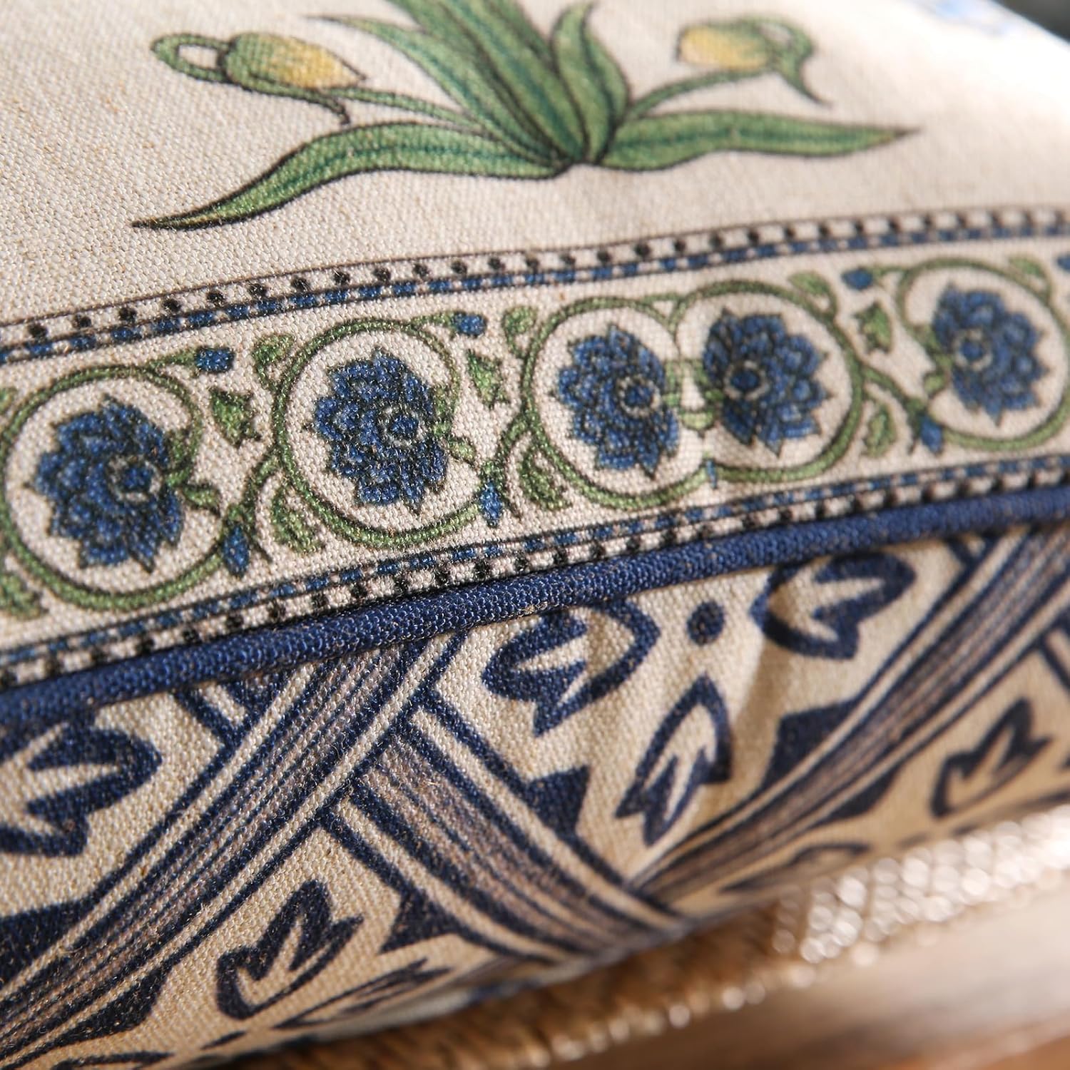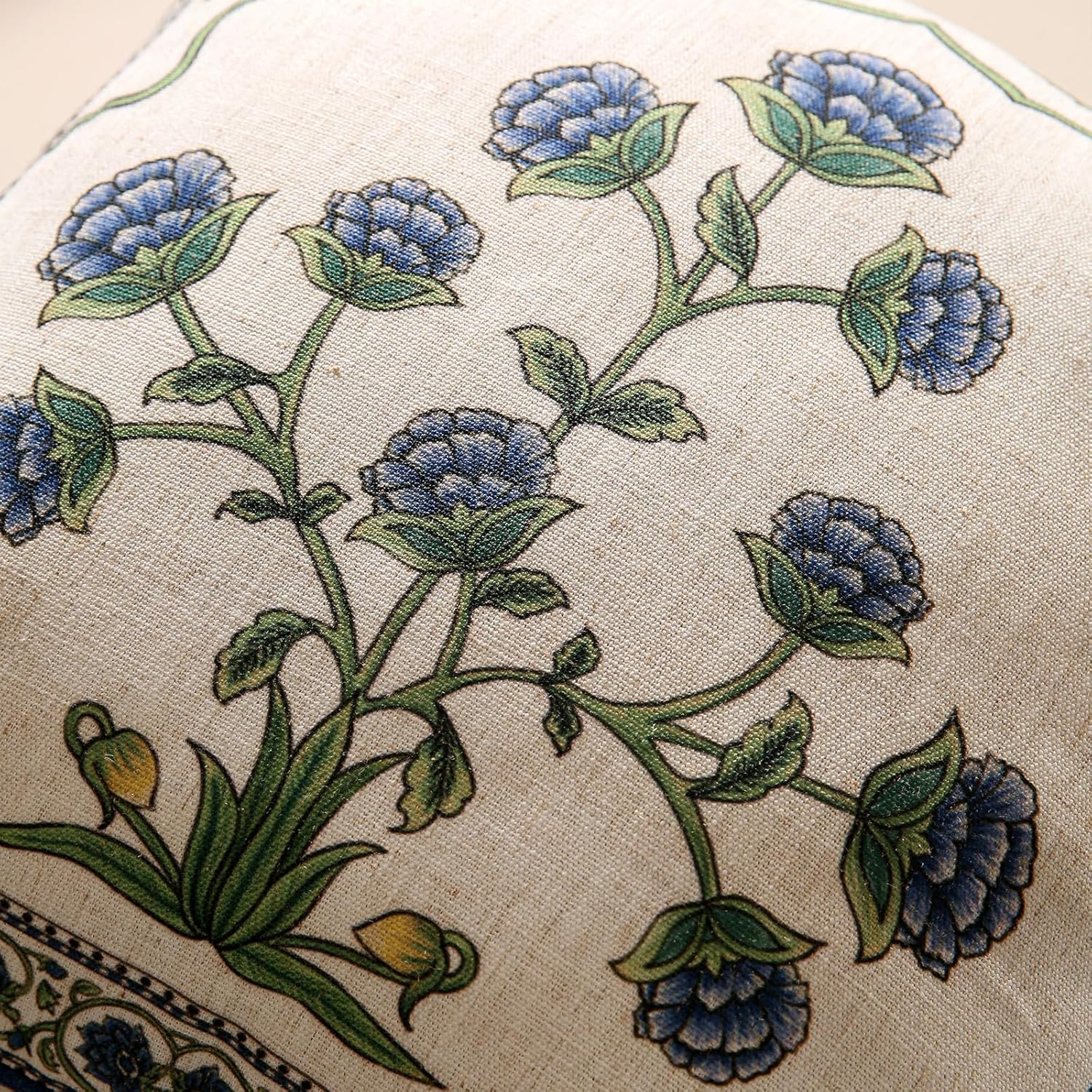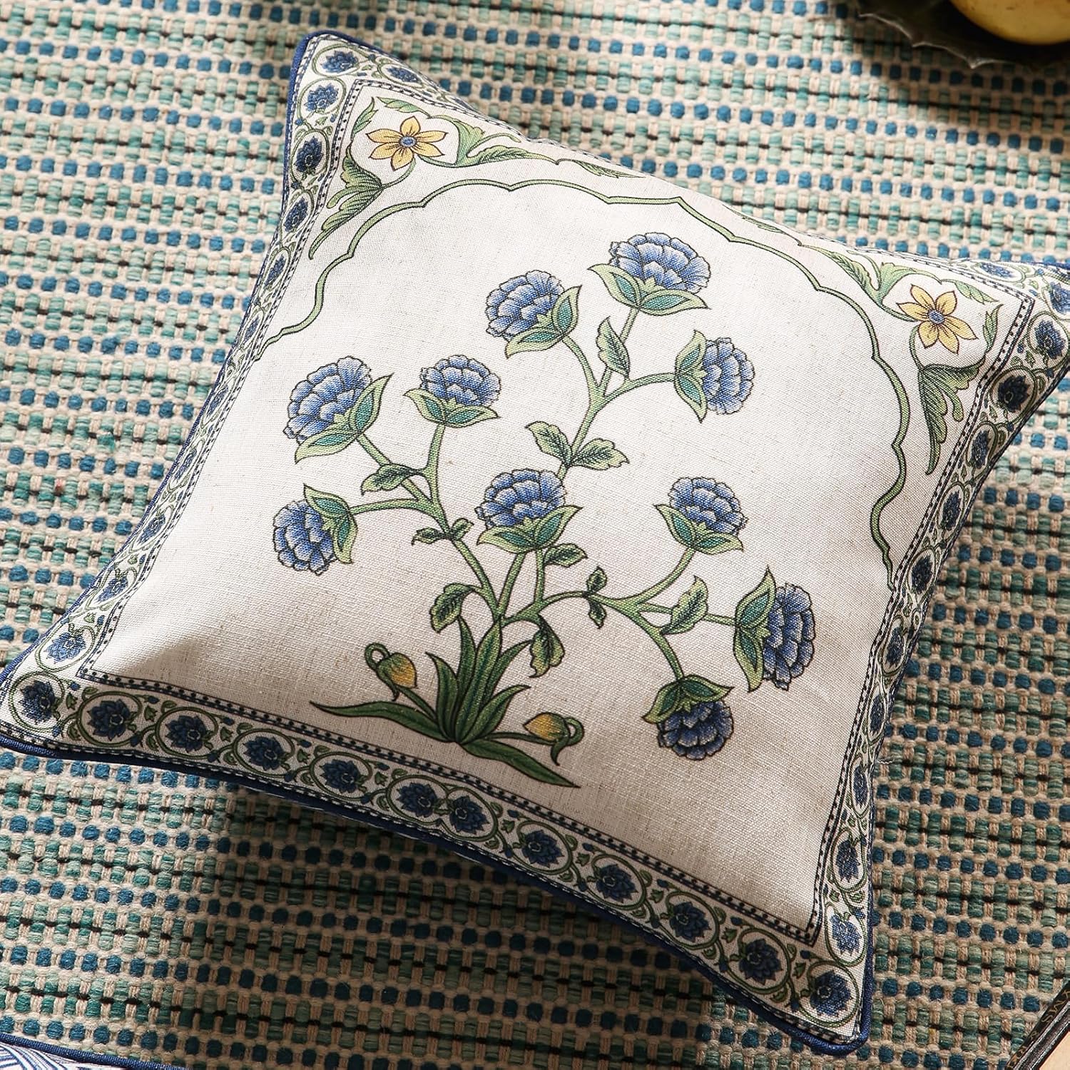 patdrea Designer Throw Pillow Covers Set of 2,Blue Euro Elegant Linen with Blooming Floral Pattern Pillow Cover,Decorative Square Pillowcases Cushion for Bed Living Room Outdoor Car,18"x18"