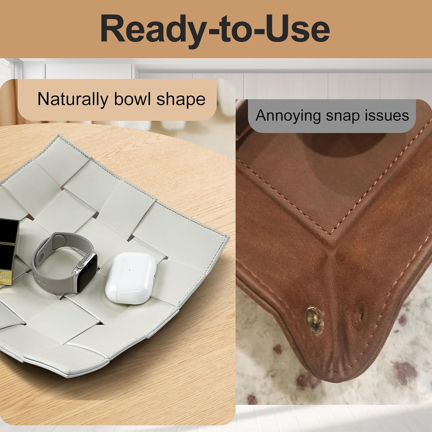 - VARIOUS USES - You can put stylish leather valet tray in bedroom, living room, bathroom entryway, office, home, apartment. It would be an fancy decoration in these scenes.