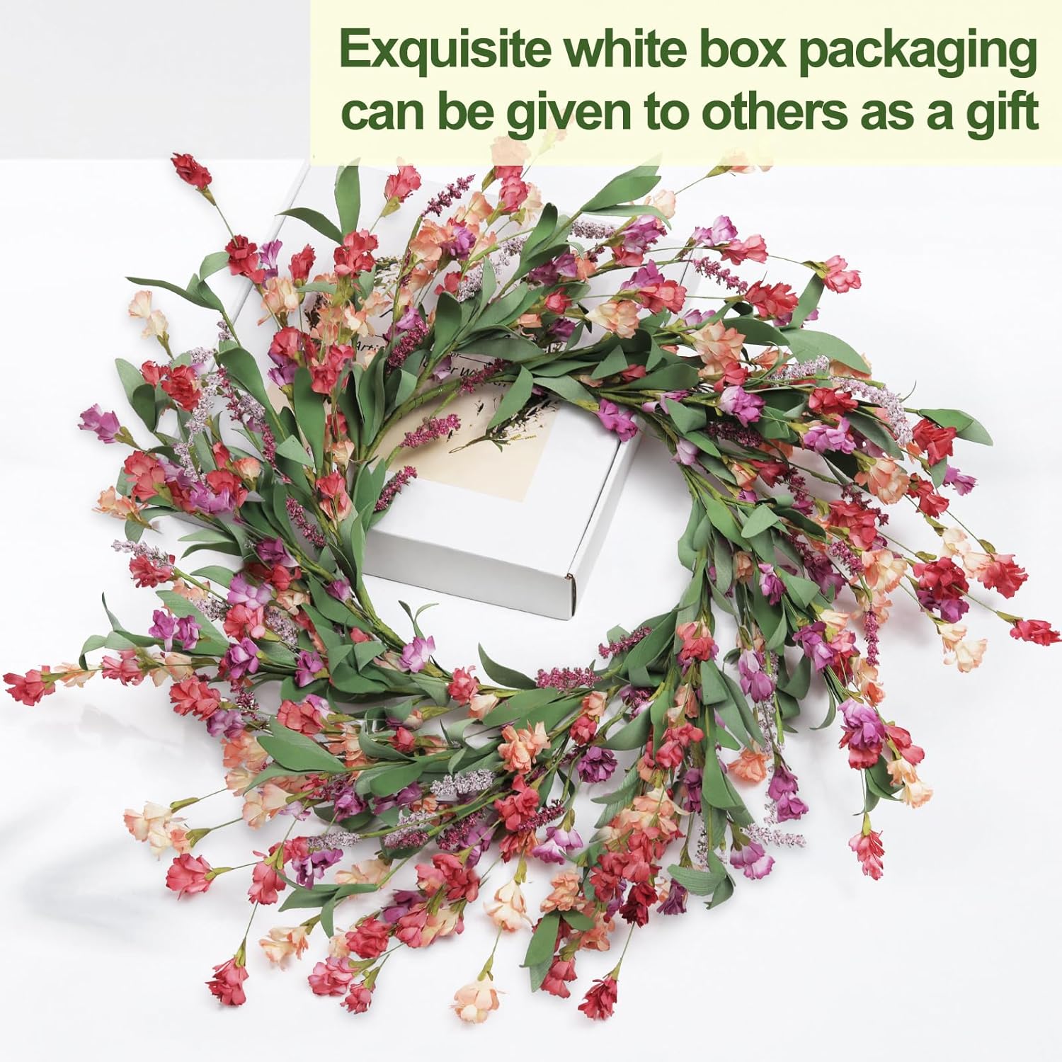 Artgar Front Door Wreath 24 Inch Spring/Summer Wreaths for Front Door, Front Door Wreaths for All Seasons for Indoor Outdoor Home Office Wall Window Wedding Farmhouse Decor (Red&Orange&Purple)