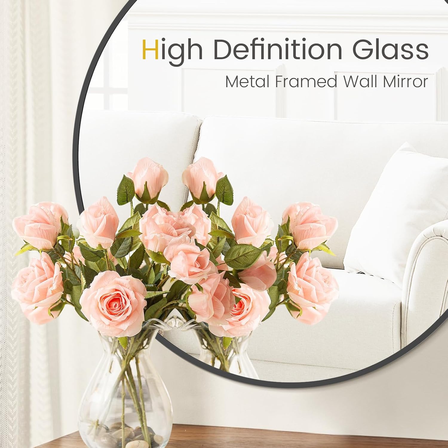 - 【HIGH-QUALITY METAL FRAME】24 inch round mirror is delicately surrounded by a high quality metal frame. The Black metal frame with the Moisture-proof PVC back panel perfectly combines sturdiness, sophisticated touch, and durability.
