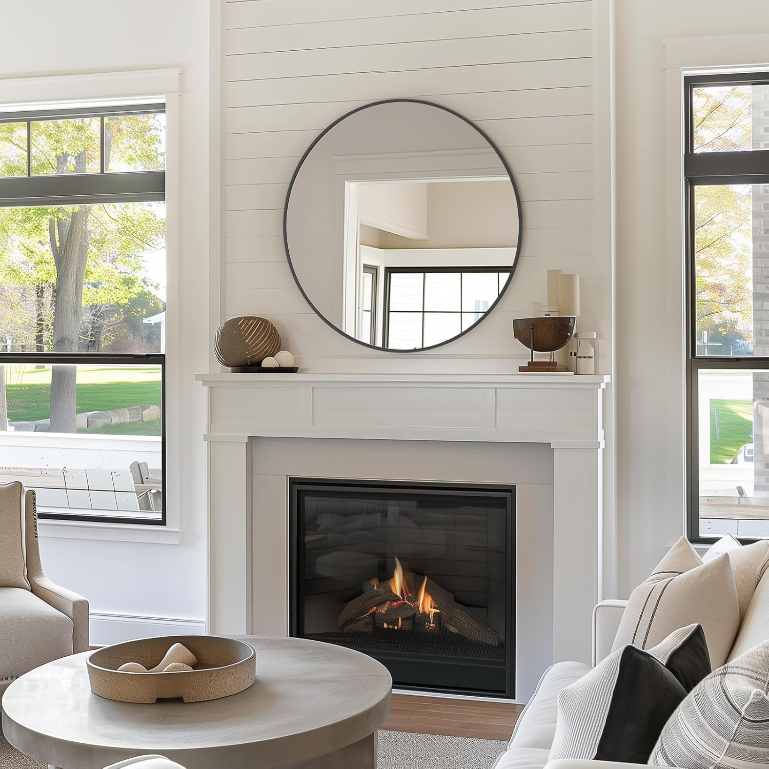 - 【MODERN & LUXURY】Simple and modern design, the black-colored frame round mirror feel elegant. Suitable for any room, Bathroom, bedroom, living room, corridor, entrance and more.