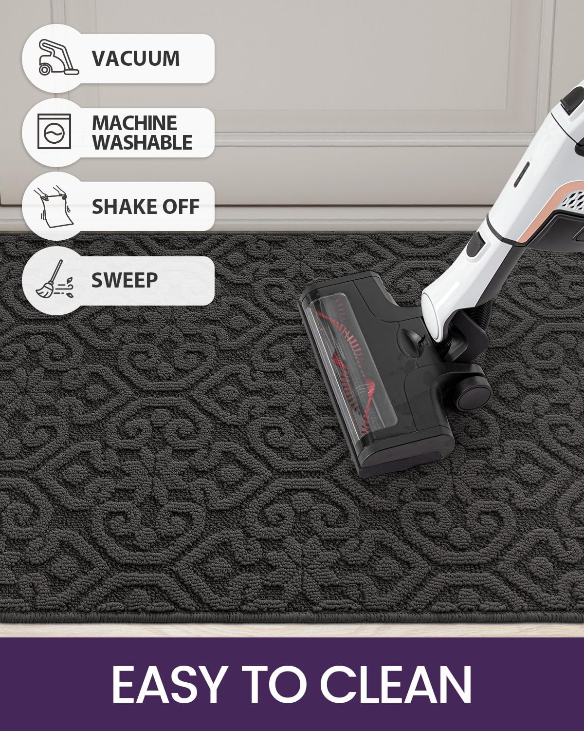 DEXI Front Door Entryway Mat Non Slip, 17x30 Washable Inside Entrance for House Floor Low Profile, Thin Entry Doormat Absorbent Dirt Trapper, Dark Grey