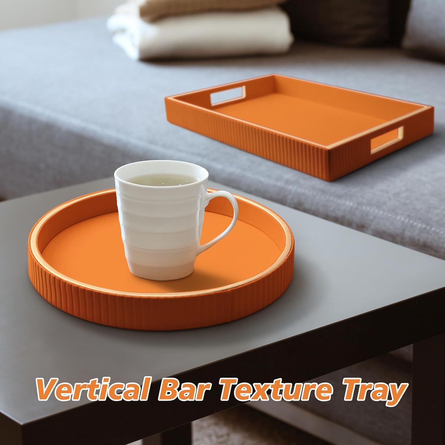 - 【Approximate Dimension】Rectangular tray, 15.3*11.2*2 inches. Round tray, diameter 10 inches, high 1.2 inches, making it a perfect size for storing small items.