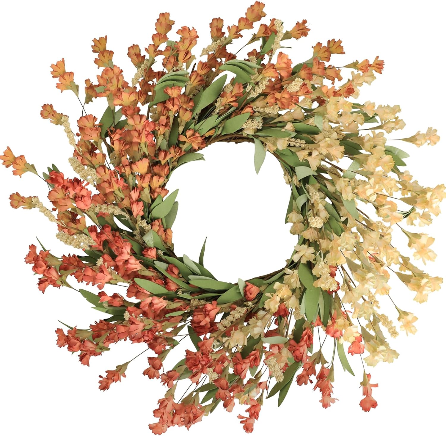 Artgar Fall Wreath, Fall Wreaths for Front Door, 24 in Fall Decor Floral Wreath, Door Wreaths for Front Door Outside All Season for Thanksgiving Home Indoor Outdoor Wall Decor (White&Orange)