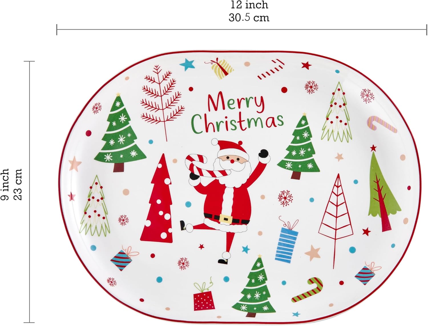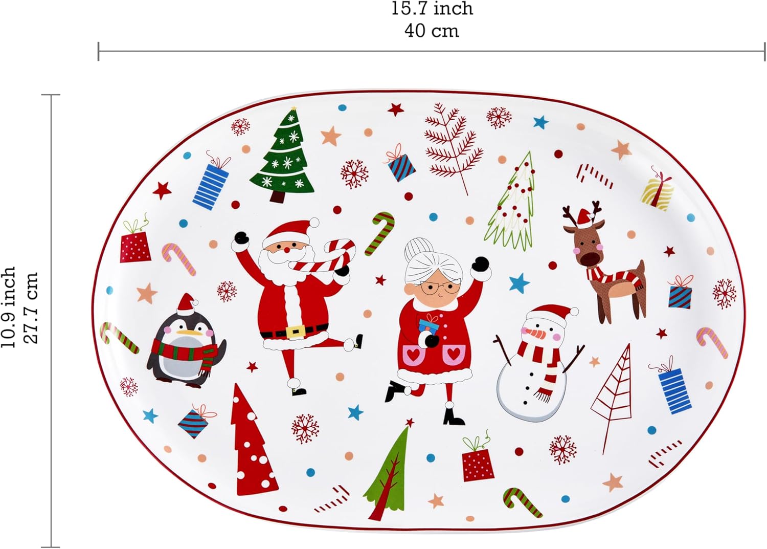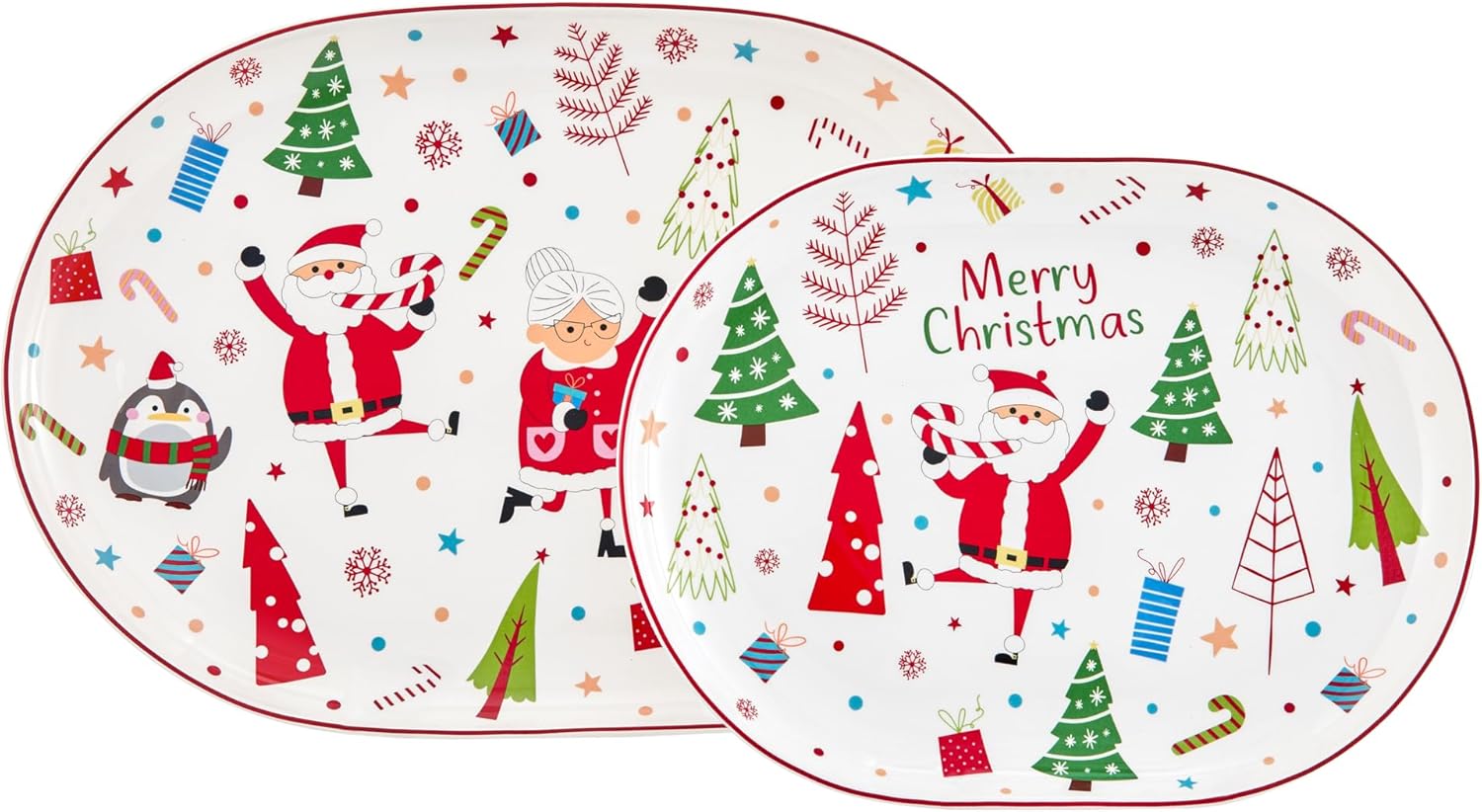 Bico Christmas Merry Crew Ceramic 16 inch plus 12 inch Ceramic Oval Platter, Set of 2, for Serving Turkey, Steak, Salad, Microwave & Dishwasher Safe