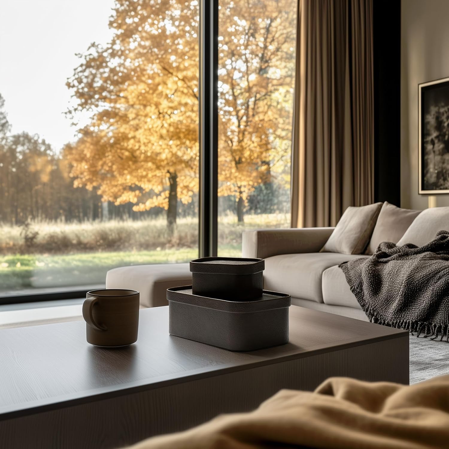 - SUSTAINABLE STYLE MEETS URBAN CHIC: Unleash your inner design maven with our game-changing storage boxes. Dressed in a luxe mocha vegan leather that screams sophistication, these eco-friendly beauties are more than just storage—they're a lifestyle statement. Crafted from premium MDF and wrapped in buttery-smooth vegan leather, these boxes are your ticket to clutter-free, Instagram-worthy spaces