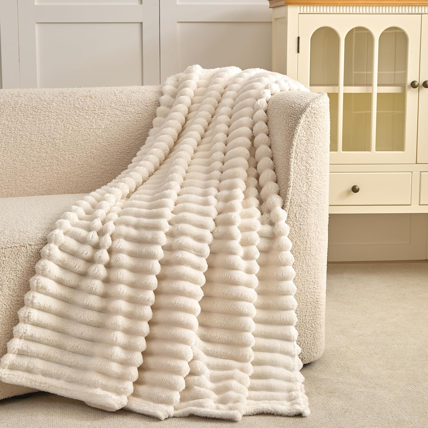 King Fleece Blanket for Couch - Super Soft Cozy Throw Blankets for Women,3D Striped Lightweight Blanket for Girls,All Seasons Flannel Blanket,Bed Home Decor,108x90 Inches