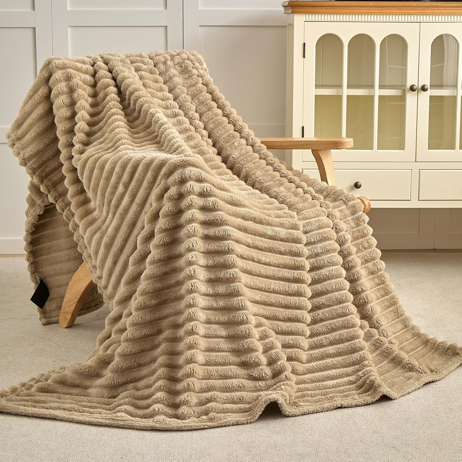 King Fleece Blanket for Couch - Super Soft Cozy Throw Blankets for Women,3D Striped Lightweight Blanket for Girls,All Seasons Flannel Blanket,Bed Home Decor,108x90 Inches