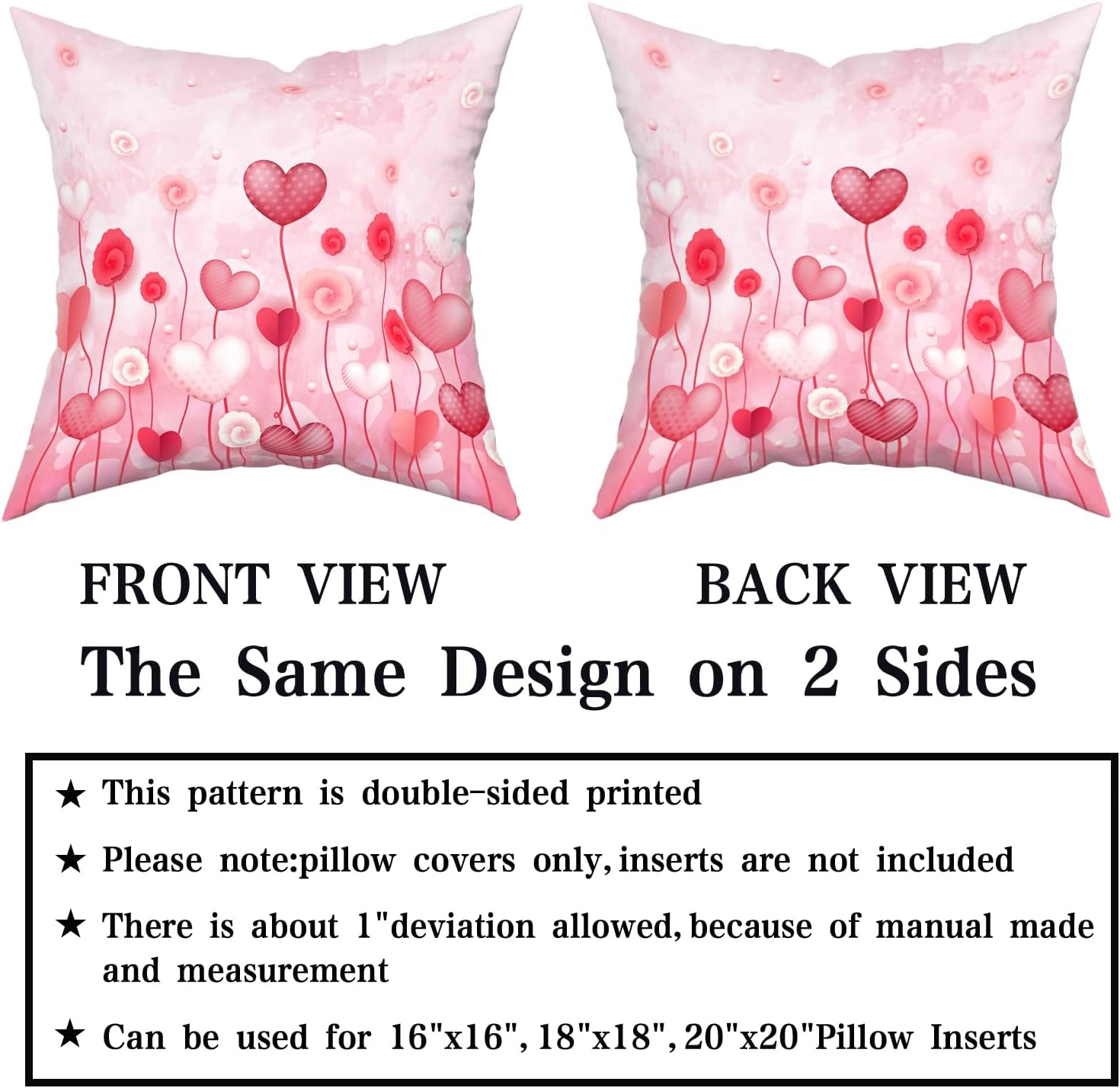 Giwawa Love Hearts Pillow Cover Set of 2 Red Pink Dots Heart Floral Cushion Covers Valentines Day Decorative Square Cotton Throw Pillowcases 18x18 Inches for Couch Sofa Bedding Wedding Holiday
