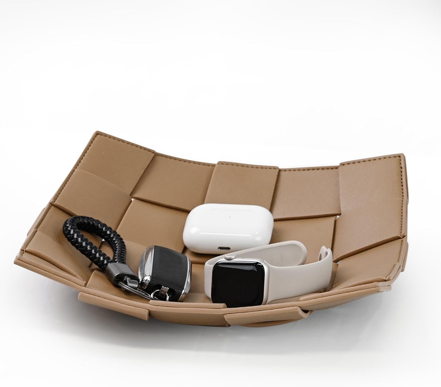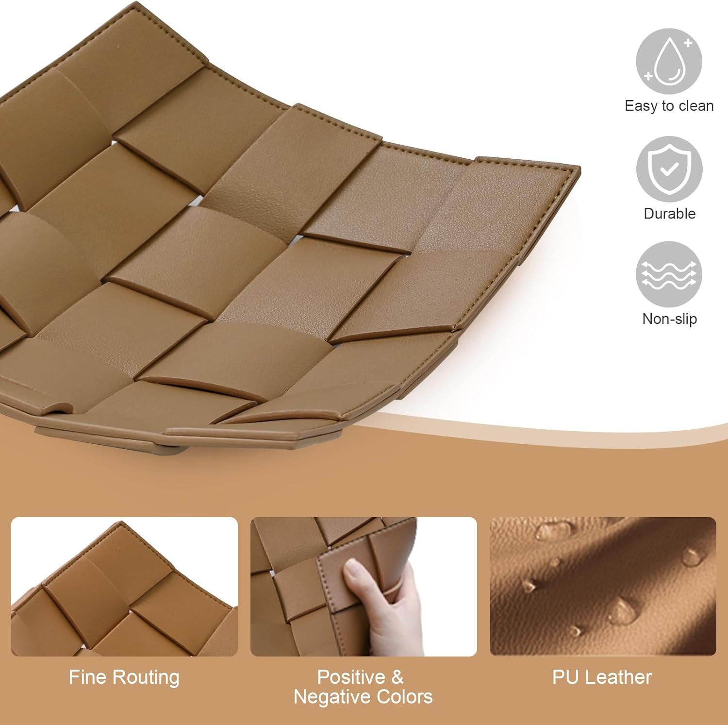 - PU LEATHER VALET TRAY FOR MEN AND WOMEN - The desk organiser tray uses a square woven with a delicate double-sided design, which is a classic room decoration
