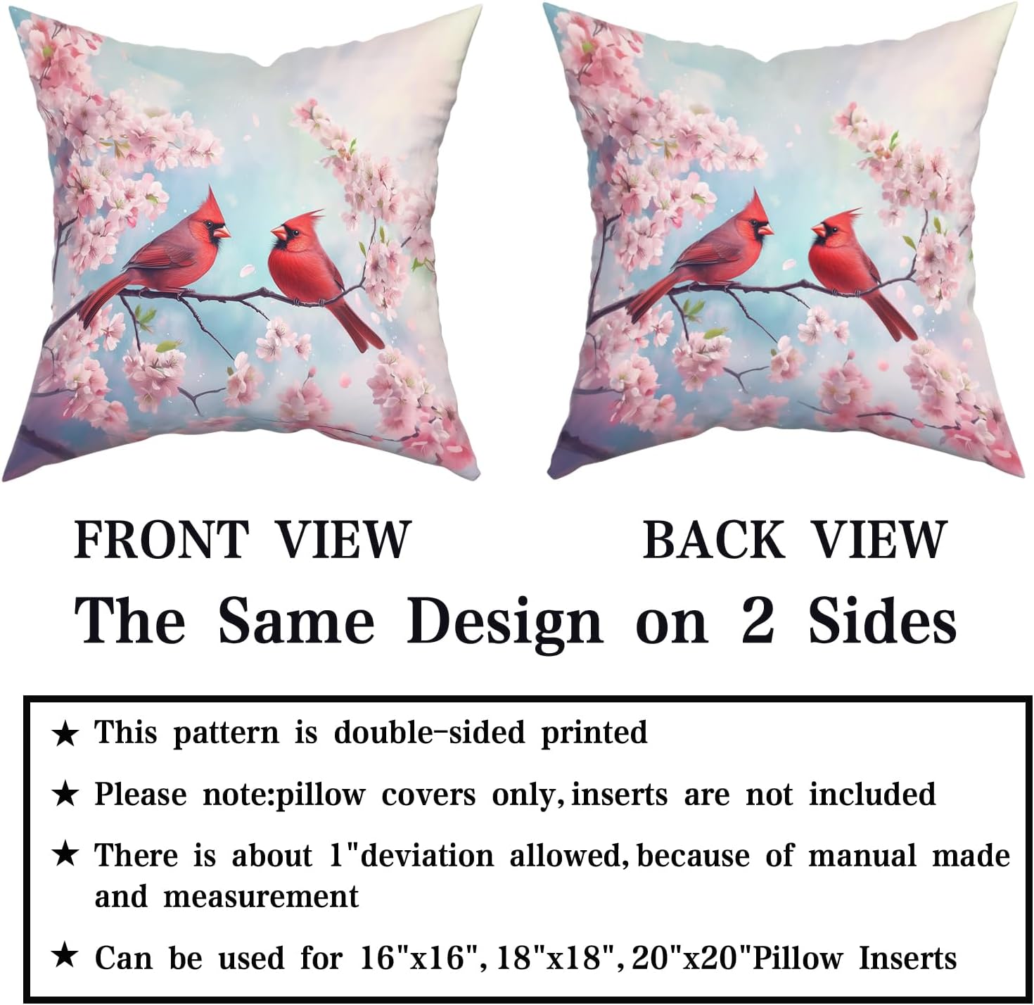 Giwawa Spring Birds Pillow Covers Set of 2, Cherry Blossom Floral Pillow Cases 16x16in, Watercolor Flowers Soft Cotton Throw Cushion Covers for Sofa Couch Patio Bedding Seasonal Decoration