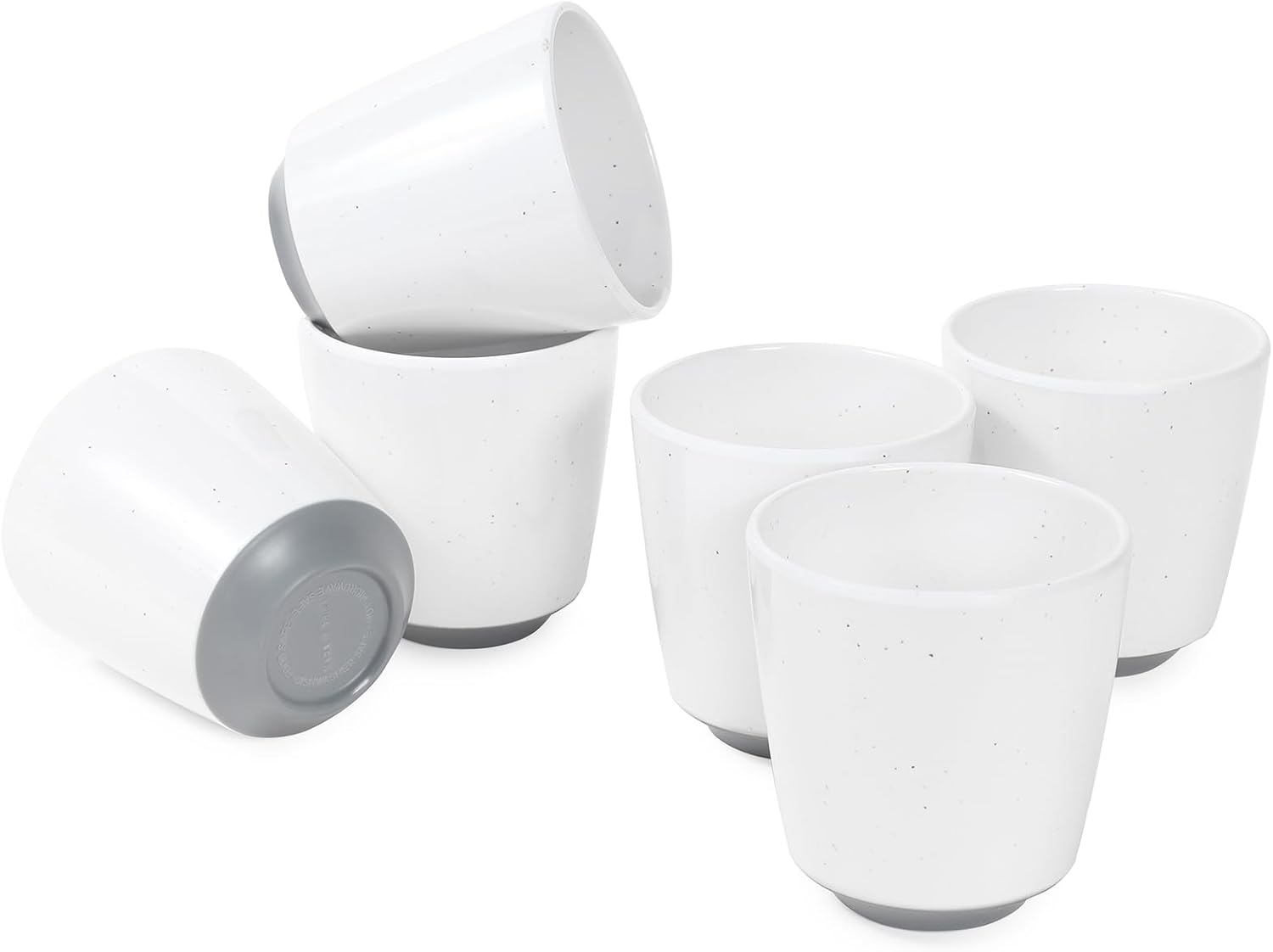 Webbylee 6-piece Melamine Cup - 12 ounce Unbreakable Reusable Drinkware for Party Wedding Camping, Dishwasher Safe & Lightweight (White/Grey)