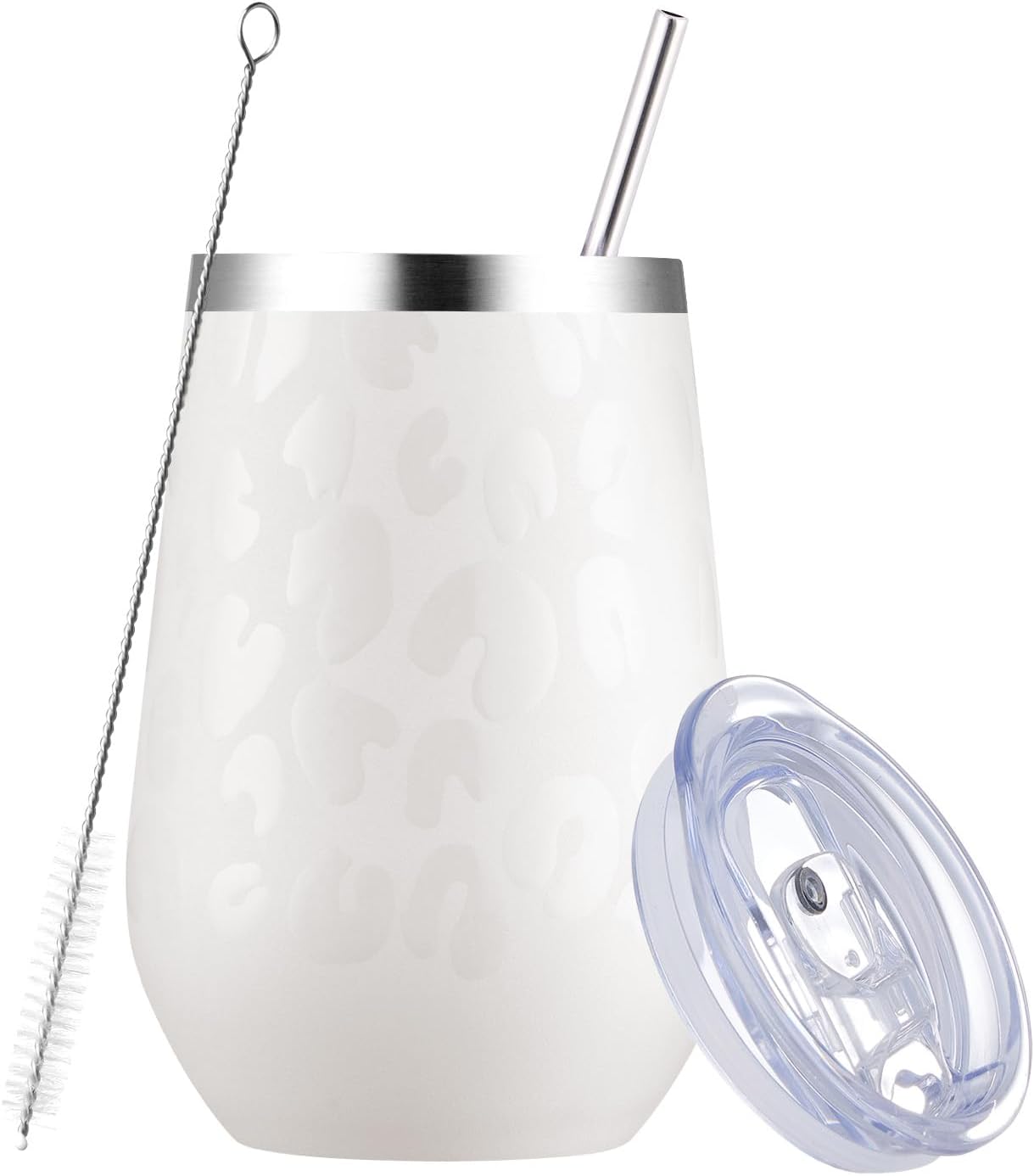 - [Package included:]1*12oz wine tumbler,1*splash proof cover with hole, 1*unbreakable steel straw, 1*straw brush,and 1*beautiful box.YOUR 100% SATISFACTION IS OUR TOP NOTCH! we walk the extra mile to ensure our customers' complete satisfaction. If you are not positively thrilled with our tumblers, just let us know and we will try to give you an satisfied reply