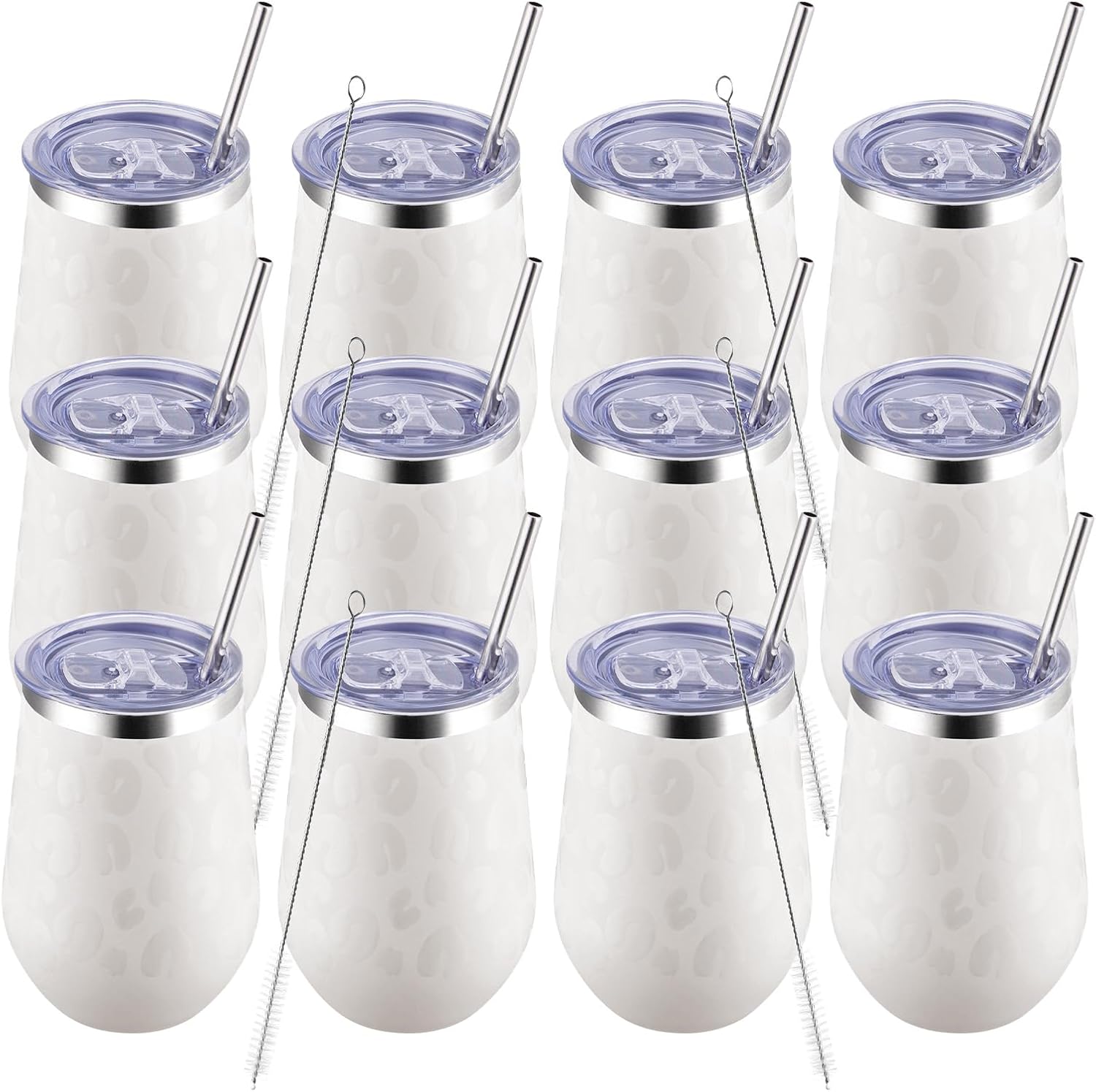 MEWAY 12oz Insulated Wine Tumbler Bulk, Double Wall Vacuum Stainless Steel Travel Tumbler with Straw,12 pack of wine tumbler(Almond Leopard,Set of 12)