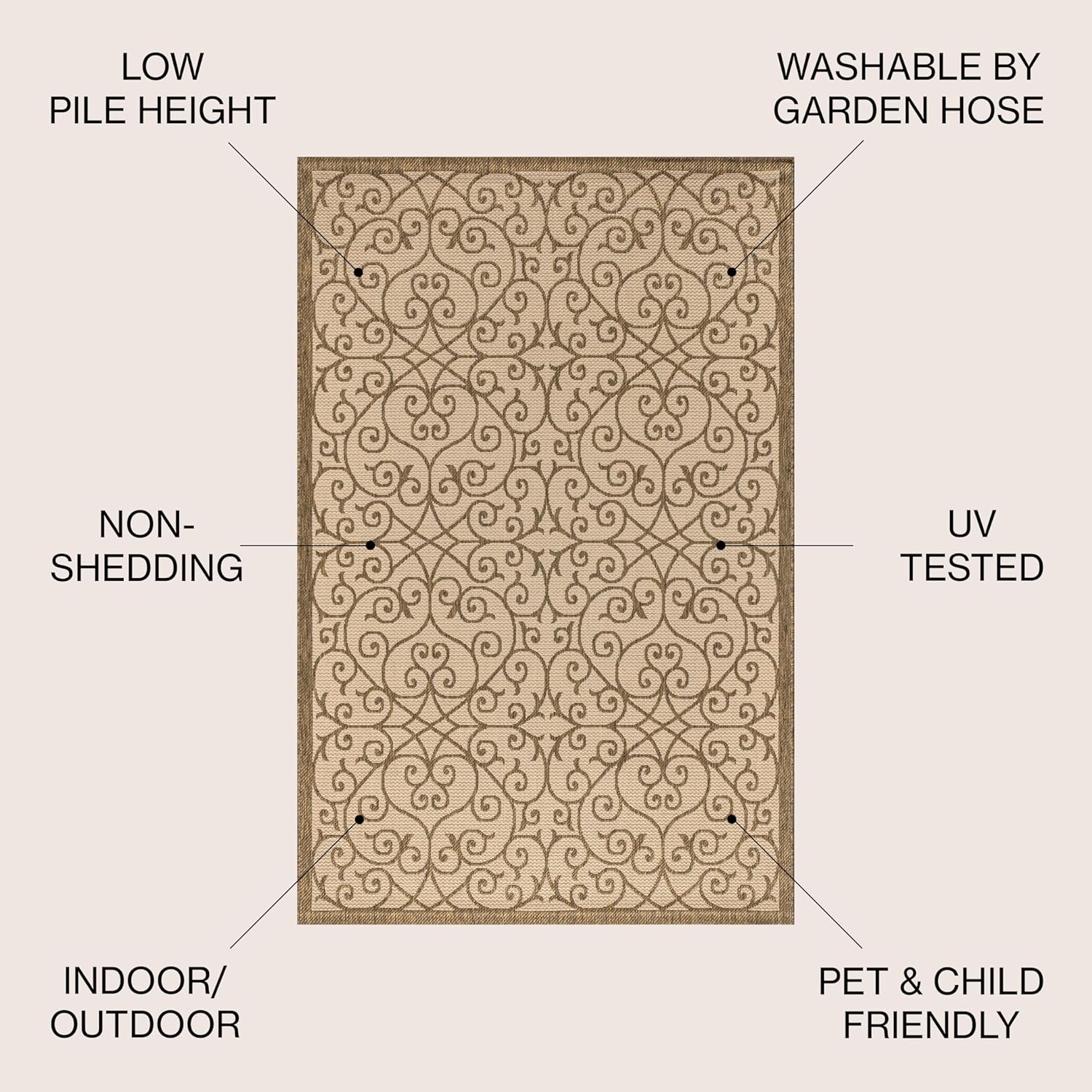 JONATHAN Y Vintage Filigree Indoor Outdoor Square Area Rug 9X9 Beige/Brown, Madrid Textured Weave for Backyard, Patio, Porch, Easy-Cleaning, High Traffic, Pet-Friendly, Non-Shedding (SMB107B-9SQ)