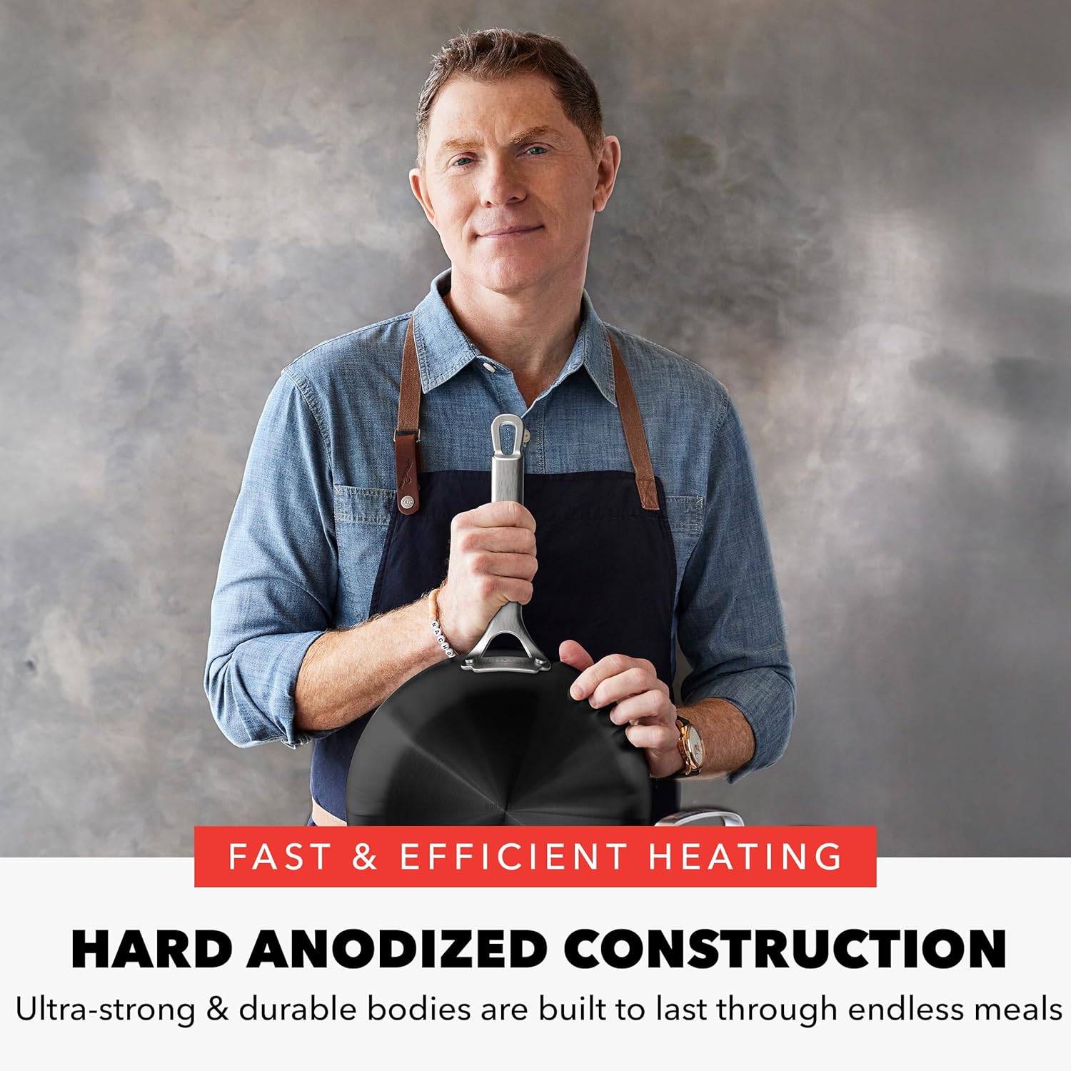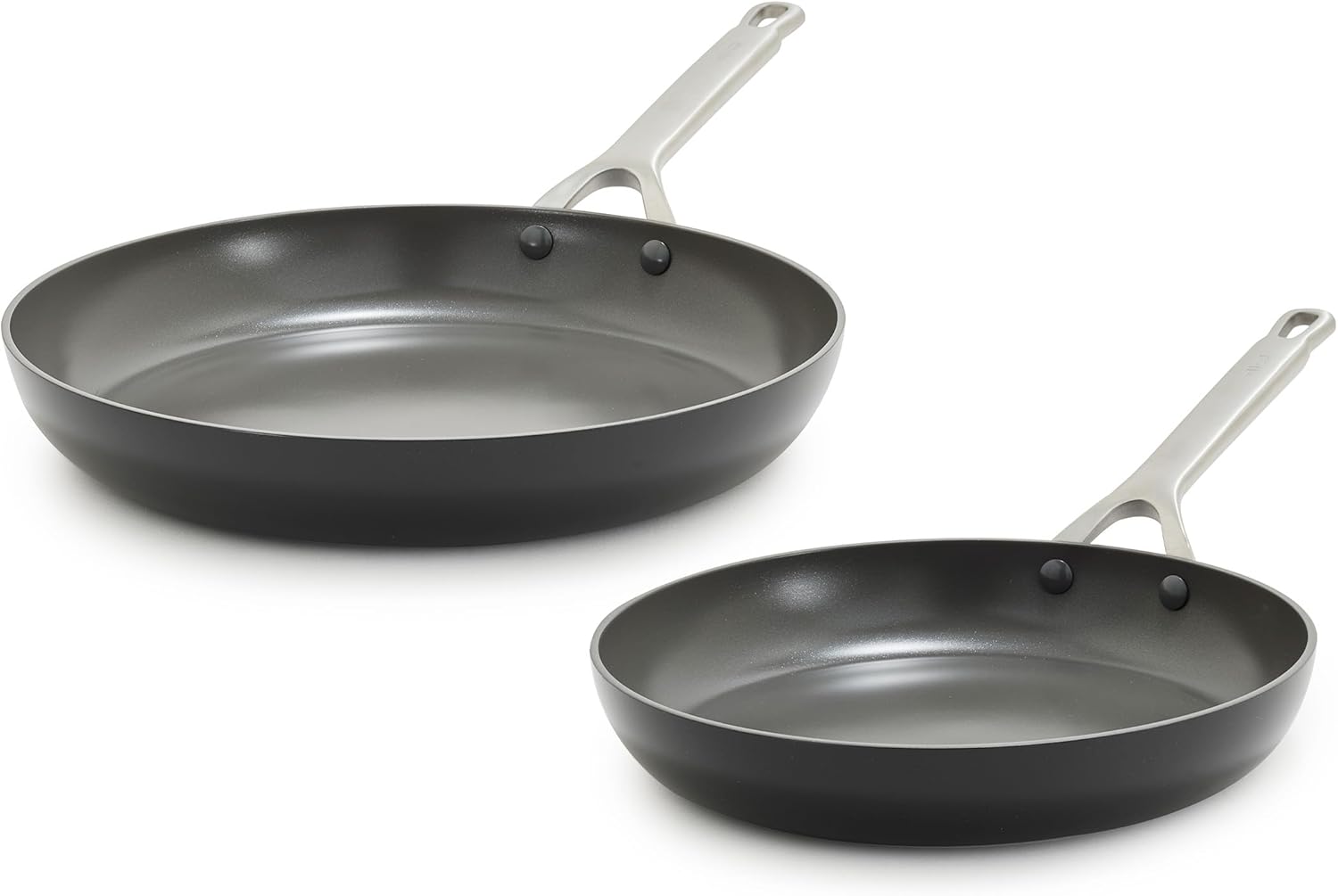 GreenPan x Bobby Flay 10” & 12” Ceramic Nonstick Frying Pan Set, PFAS-Free, Hard Anodized Cookware, Induction Compatible, Stainless Steel Handles, Oven & Broiler Safe to 600˚F, Dishwasher Safe, Black