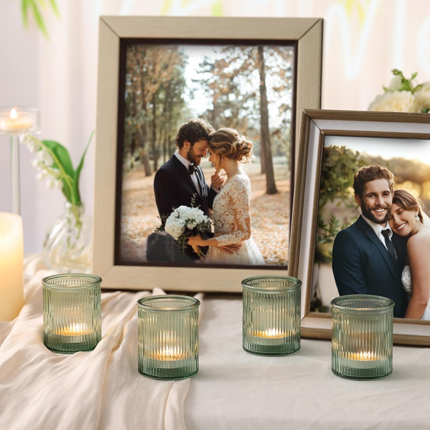 - Wedding Table Decor: Green Striped Glass Candle Holders add a touch of elegant charm to wedding decor, blending natural vibrancy with timeless sophistication. Flickering candlelight through the striped glass casts delicate patterns, enhancing romantic atmospheres for receptions or aisle linings.