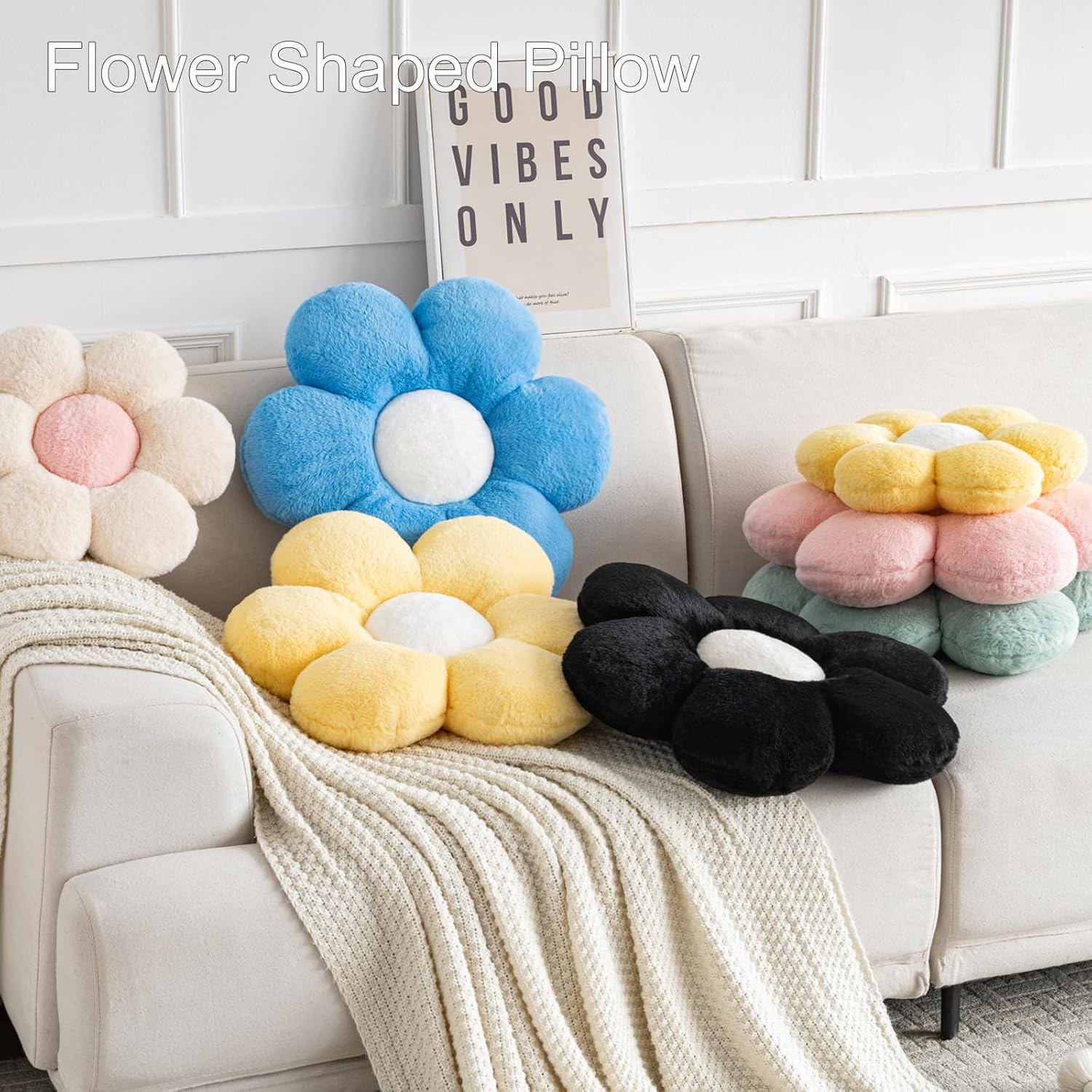 - Soft Premium Material: Enhance your home decor with this flower-shaped pillow made from soft artificial rabbit fur. It's a perfect blend of style and comfort, making it an ideal flower throw pillow for both your couch and bed. These daisy pillows are the epitome of cute throw pillows for any setting.