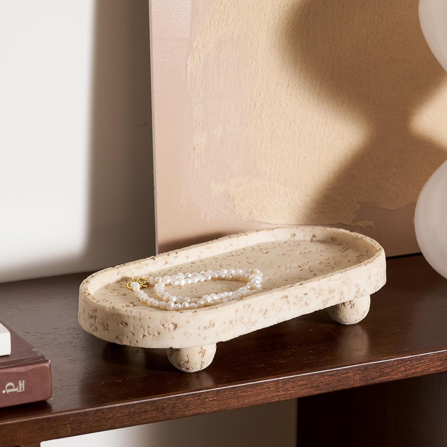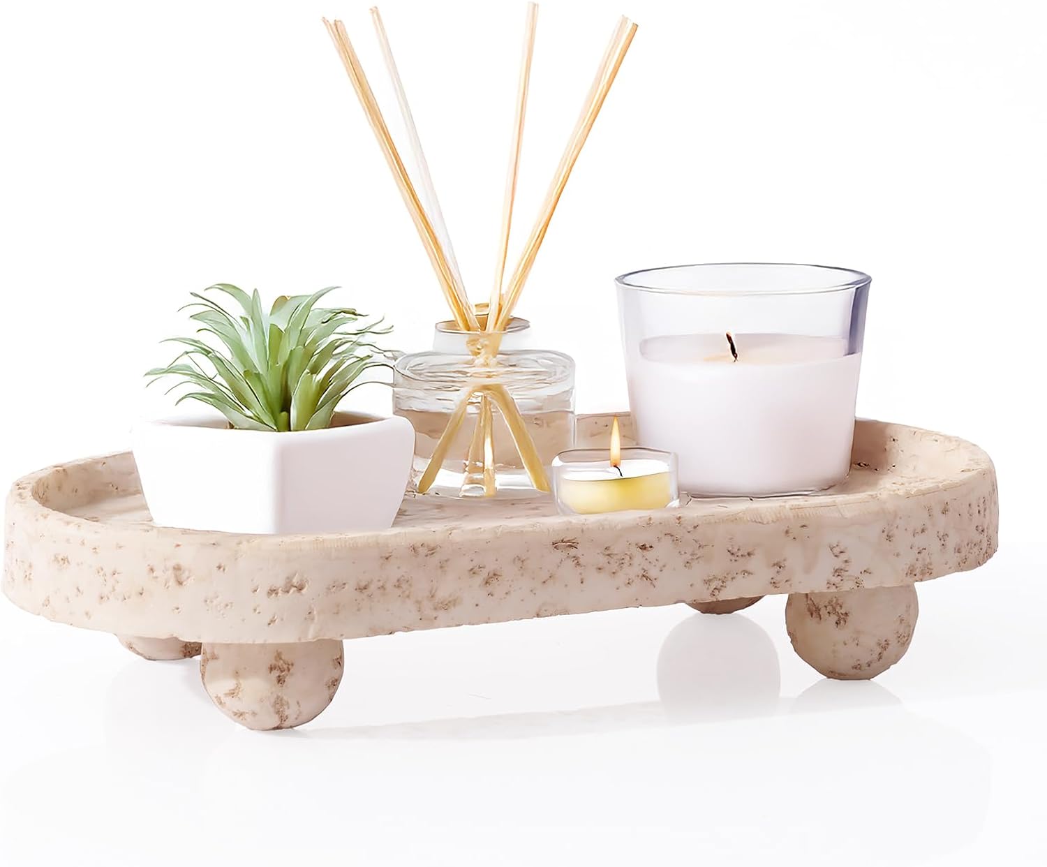 - 【Non-Slip Base for Stability】 Equipped with four cute round feet, this countertop tray provides elevated stability and prevents slipping. Whether used as a stone tray for living room or kitchen tray, it stays securely in place while protecting surfaces.