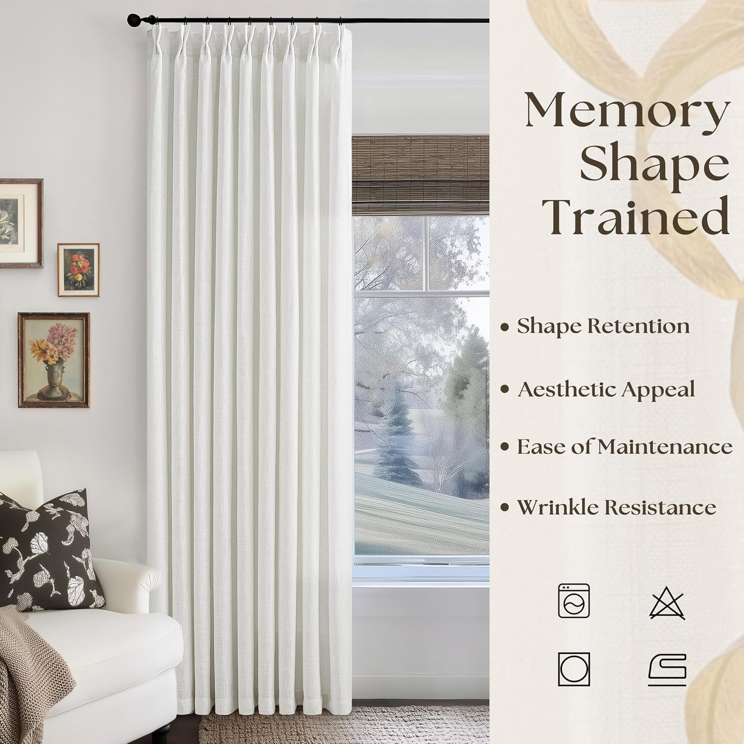 Ivory White Pinch Pleated Linen Curtains 1 Panel for Living Room Bedroom Memory Training Shaped Semi Sheer Pleat Drapes Hooks Rings Light Filtering Non See Through Window Curtain Sliding Door 60x108