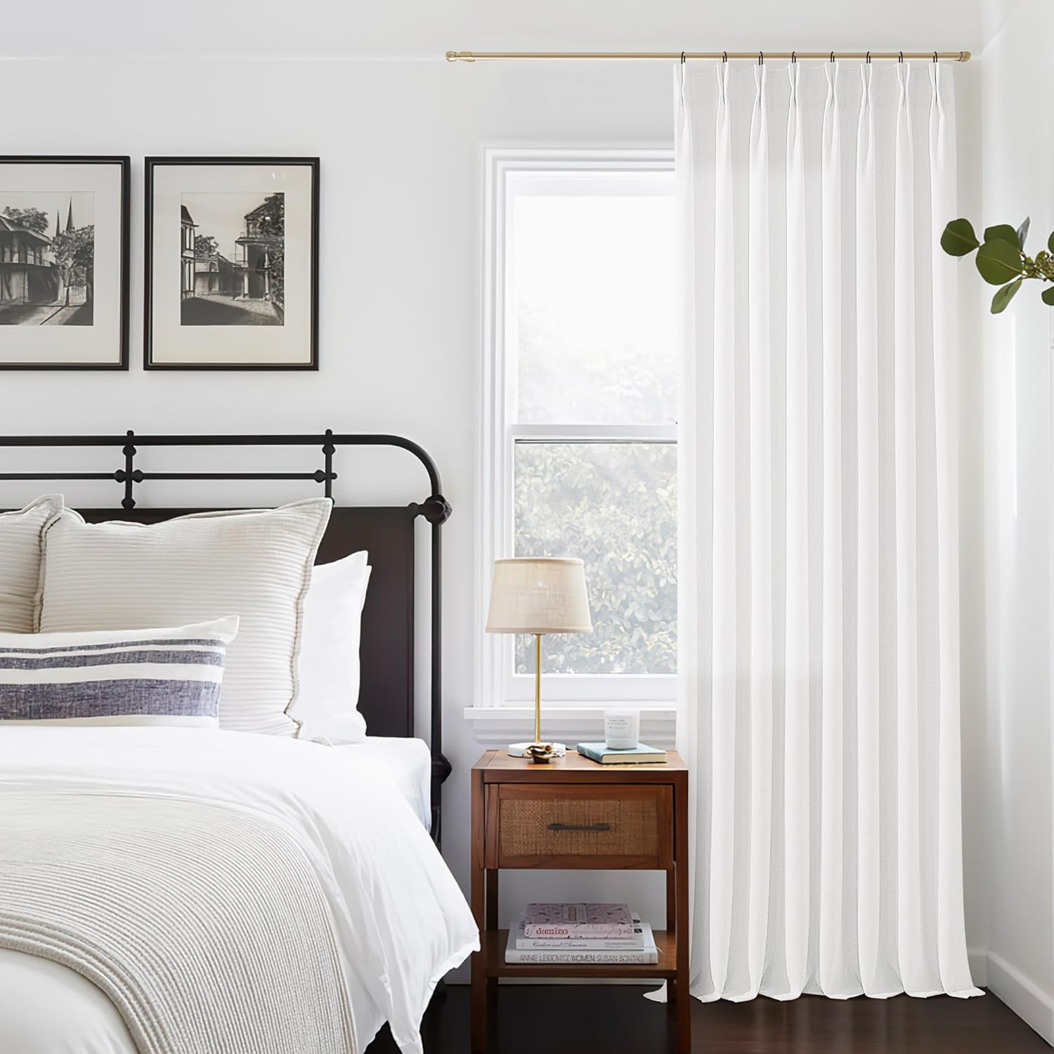 Snow White Pinch Pleated Linen Curtains 102 Inches Long 50 Inch Width for Living Room Bedroom Memory Shape Trained Semi Sheer Pleat Drapes Hooks Rings Light Filtering 102 Inch Window Curtain 1 Panel