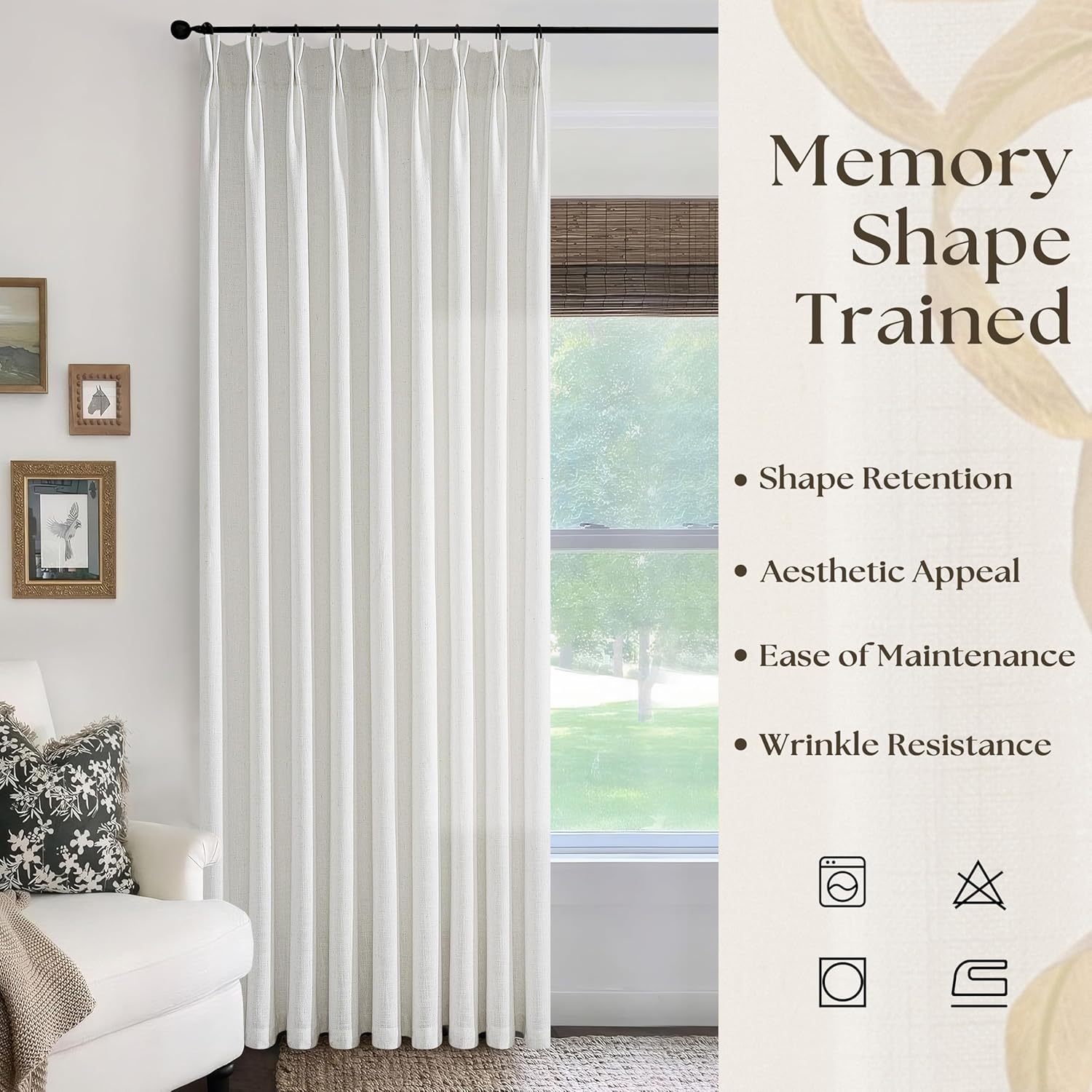 - Memory Shape Trained & Luxury Pleated Design: Features permanent sewn-in pleats for a custom high-end appearance. Using Memory Shape Technology at 248°F to retain shape, ensuring neat, wrinkle-resistant folds that stay elegant over time