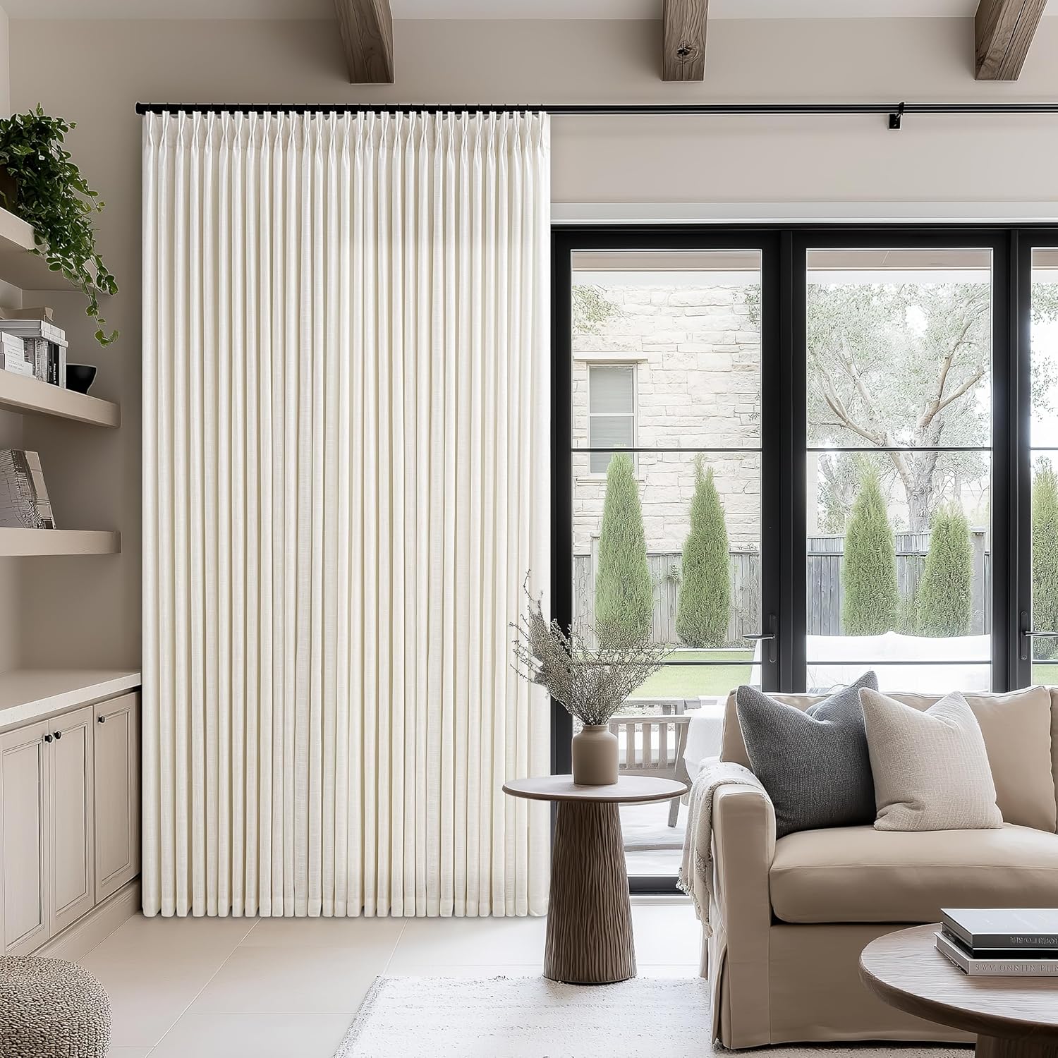Pinch Pleated Linen Curtains 90 Inches Long for Living Room Cream Ivory Light Filtering Pinch Pleat Hooks Rings Back Tab Neutral Boho Farmhouse 90 Inch Curtain Drapes for Bedroom Window 1 Panel