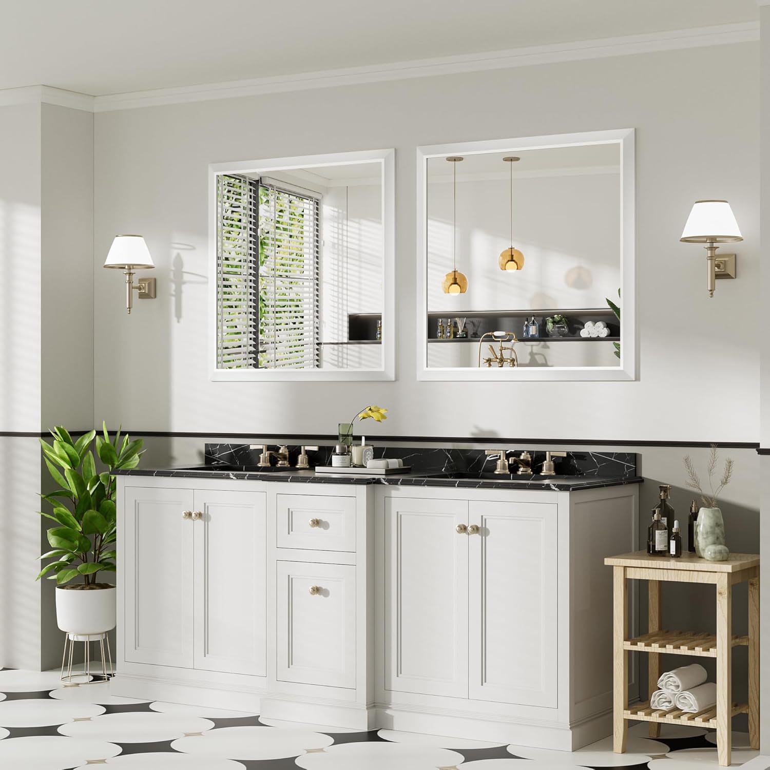 - 【Overall Aesthetics for Room Decor】The white bathroom mirrors for over sink with its modern frame, not just for bathroom, it also can be used in a variety of scenarios, like vanity, farmhouse, bedroom, living room, dining room, entryway, fireplace, corner which is perfect to a room remodeling project and adds a stylish look to your house.
