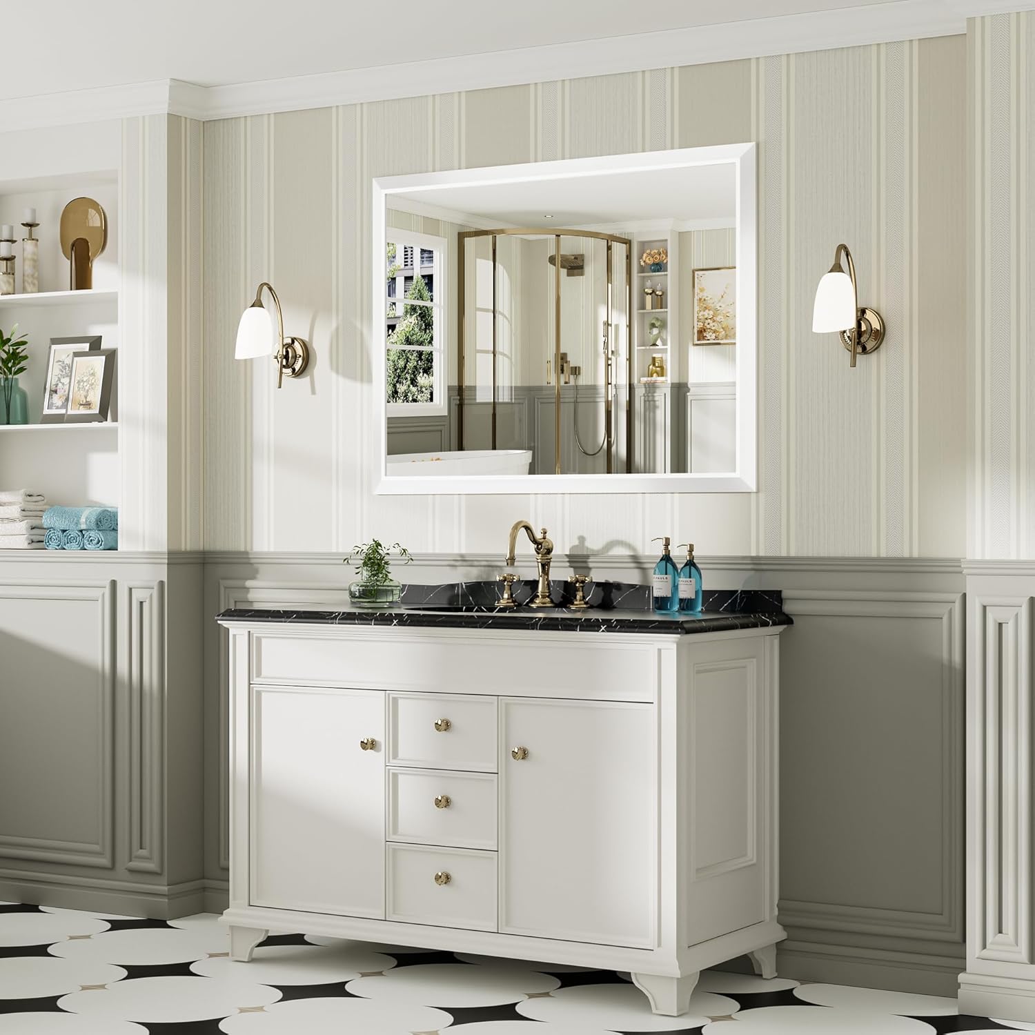 48x36 Inch White Bathroom Mirror for Wall, Thick Metal Framed Rectangle Mirrors for Over Sink, Bedroom, Living Room, Entryway, Anti-Rust, HD Tempered Glass