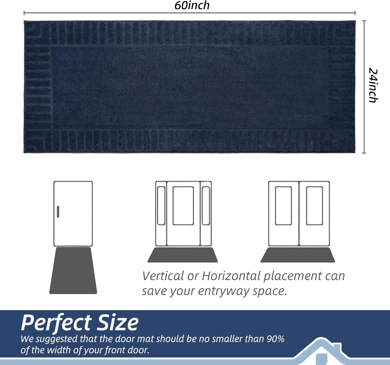 BEQHAUSE Door-Mat-Non-Slip Dirt Trapper Door Mats Low-Profile Front Door Mat Absorbent Floor Mats for Entryway Washable Mud Resistant Home Entrance Doormat,Navy Blue,24"x60"