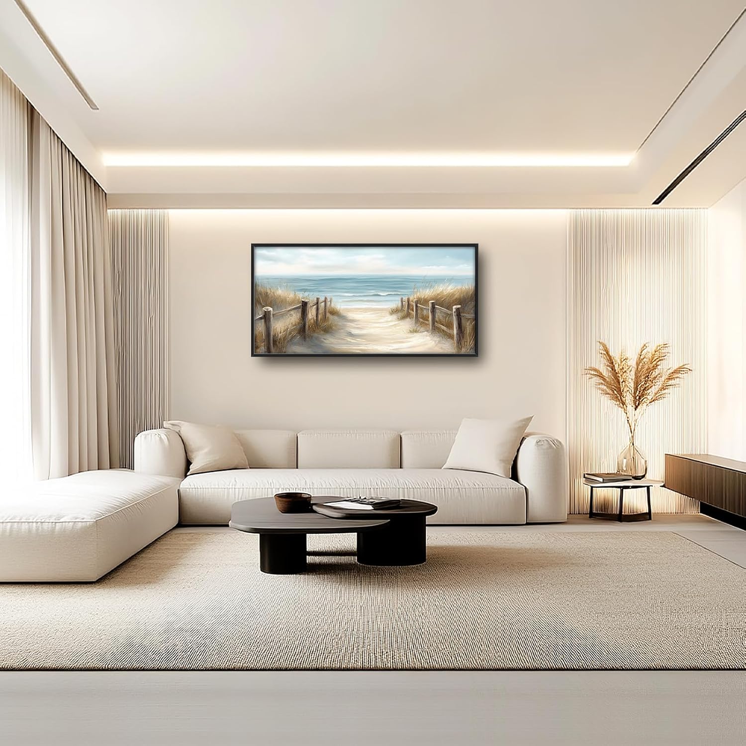 Olivine Beach Large Wall Art, Coastal Seascape Pictures Wall Decor, Nautical Paintings, Sea Canvas Prints, Framed Artwork for Dining Room Bedroom Living Room Office Bathroom Home Decoration 60"x30"
