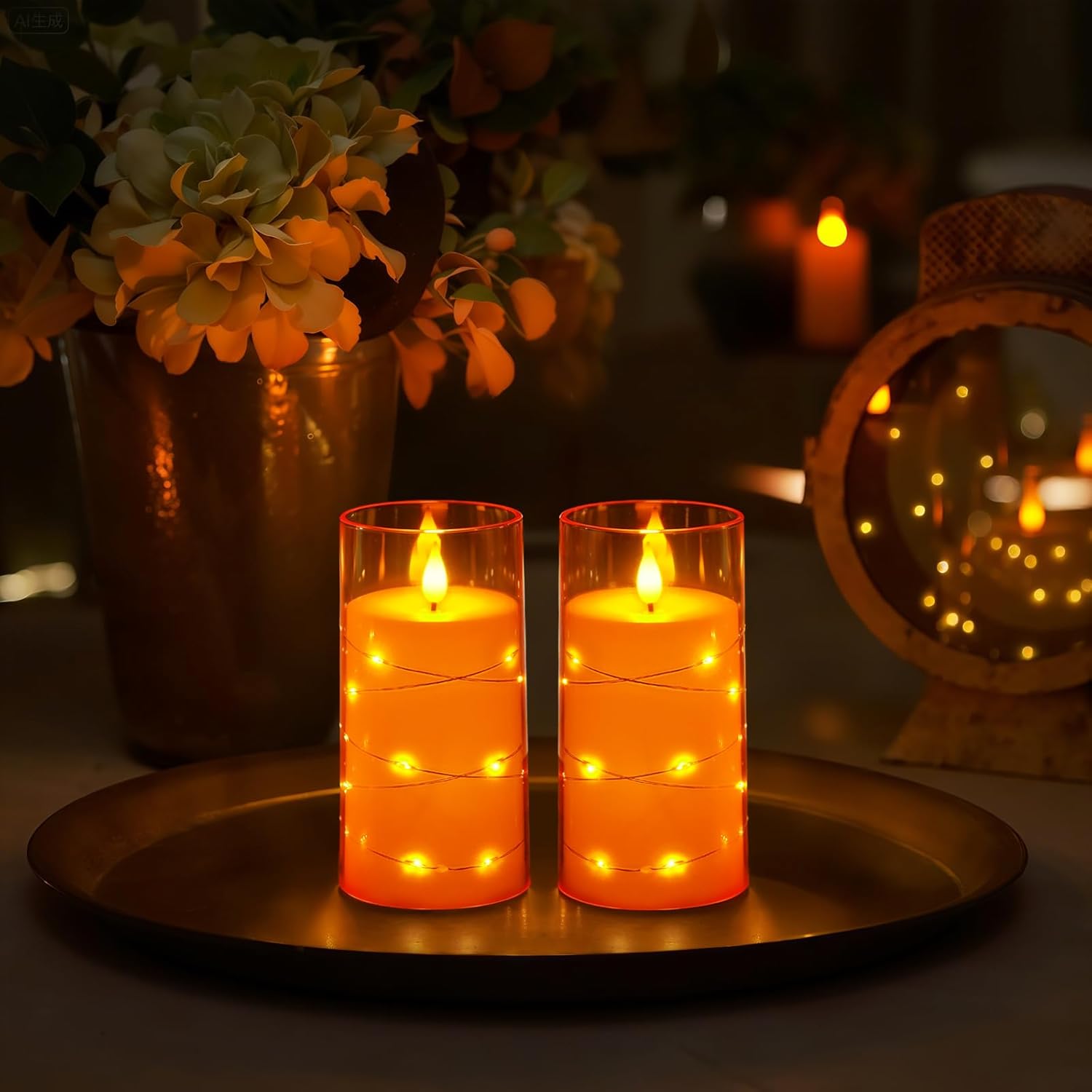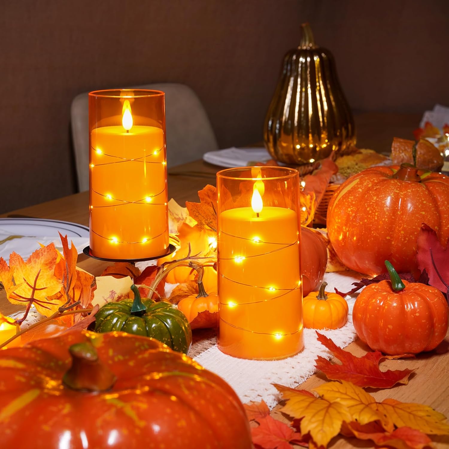 - Charming String Light Design: These Homemory flameless candles are creatively wound with fairy lights to emit a bright and beautiful light, the embedded string lights are perfect for use in decorative scenes such as home, wedding, Halloween, Thanksgiving, Christmas, etc.